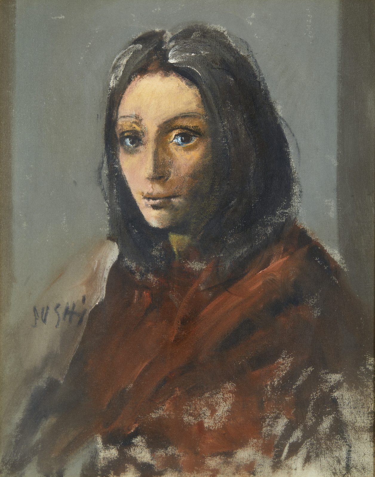 SUGHI ALBERTO (n. 1928) Senza titolo. Olio su tela . Cm 40,00 x 50,00. Firma a sinistra. Opera in corso di archiviazione presso l'Associazione Archivio Alberto Sughi. Cornice presente
