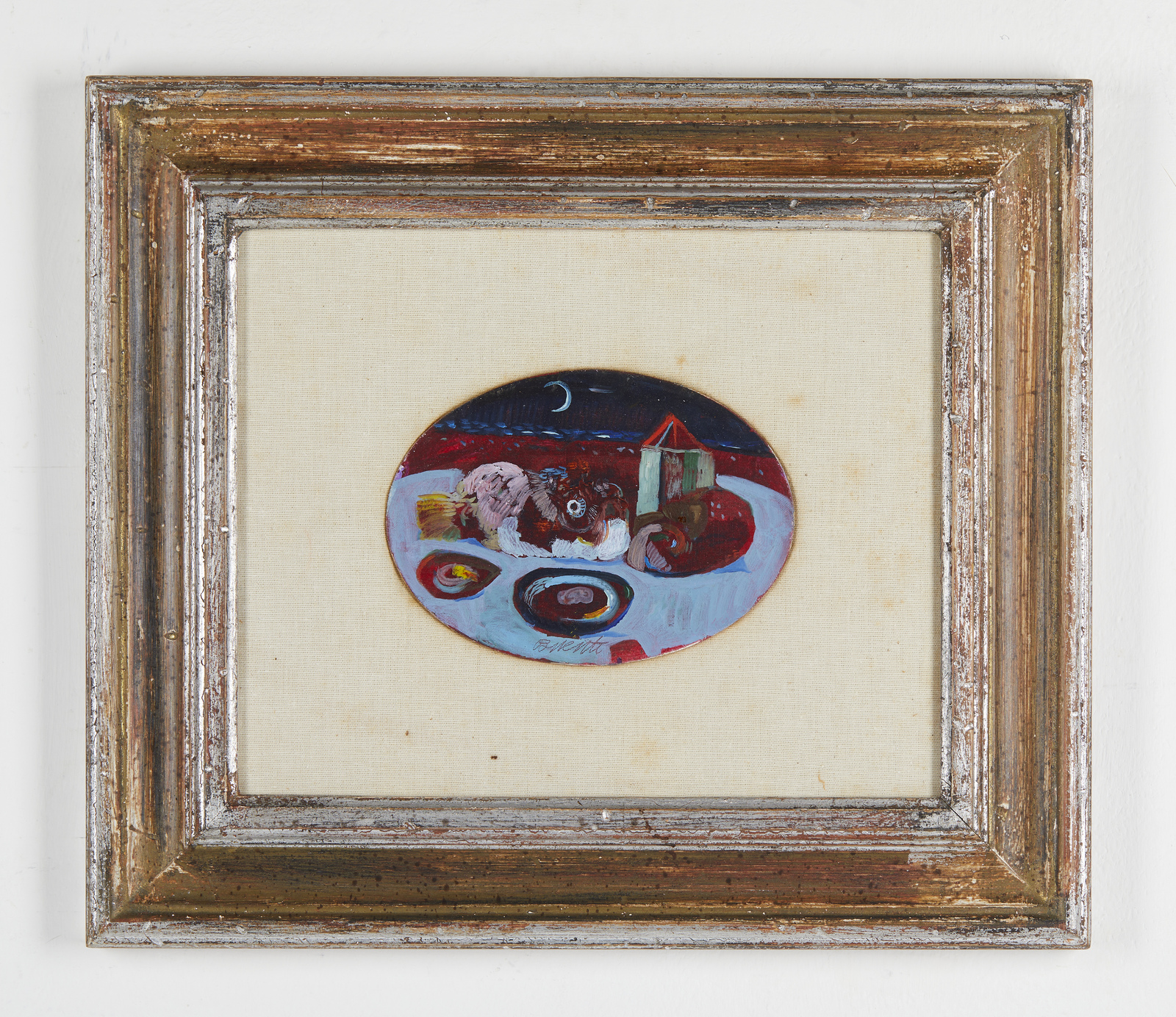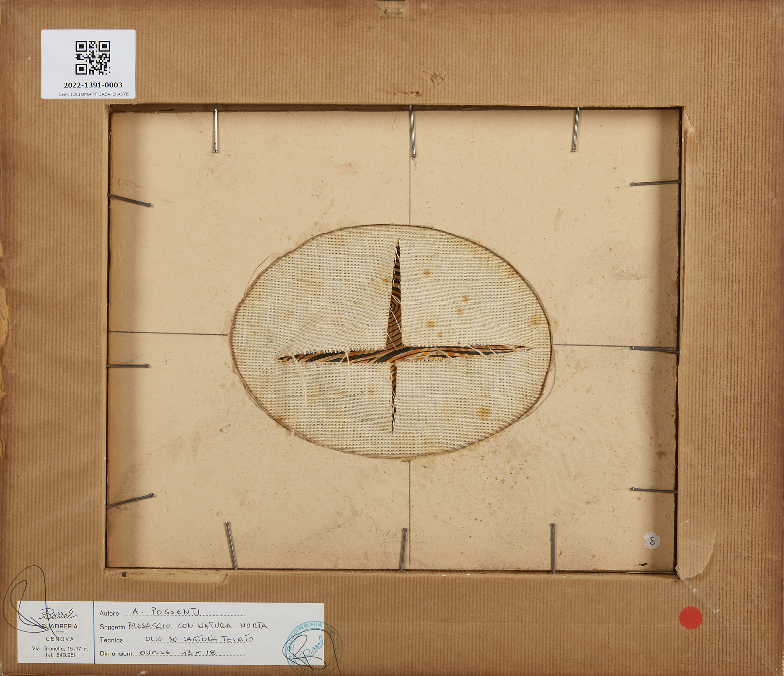POSSENTI ANTONIO (1933 - 2016) Senza titolo. Olio su cartone telato. Cm 18,00 x 13,00. Firma in basso al centro. Al retro cartiglio descrittivo e timbro Barrel Quadreria, Genova. Si ringrazia Giovanni Possenti per aver confermato l'autenticità dell'opera. Cornice presente