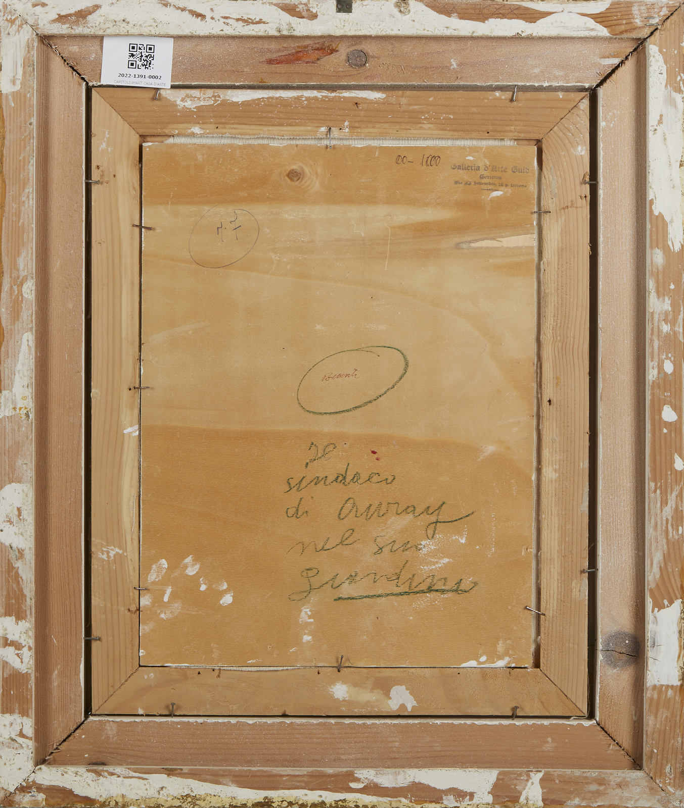 POSSENTI ANTONIO (1933 - 2016) Il sindaco di Auray nel suo giardino. 1985. Olio su tavola. Cm 30,00 x 40,00. Firma in basso a sinistra e titolo in basso a destra. Al retro titolo, firma e timbro Galleria d'Arte Guidi, Genova. Autentica dell'artista su fotografia con timbro Galleria d'Arte Guidi, Genova. Si ringrazia Giovanni Possenti per aver confermato l'autenticità dell'opera. Cornice presente