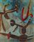 DOVA GIANNI (1925 - 1991) Uccelli. 1961. Olio su tela . Cm 50,00 x 60,00. Firma e anno in basso a sinistra. Al retro titolo, firma, anno, timbro e cartiglio descrittivo Galleria Michaud, Firenze. Provenienza: Galleria Michaud, Firenze; Collezione Narazio Salti, Sesto Fiorentino; Collezione privata. Opera archiviata presso l'Archivio Gianni Dova, Milano, come da documentazione fotografica allegata all'opera riportante il relativo numero d'inventario. Lievi difetti. Cornice presente