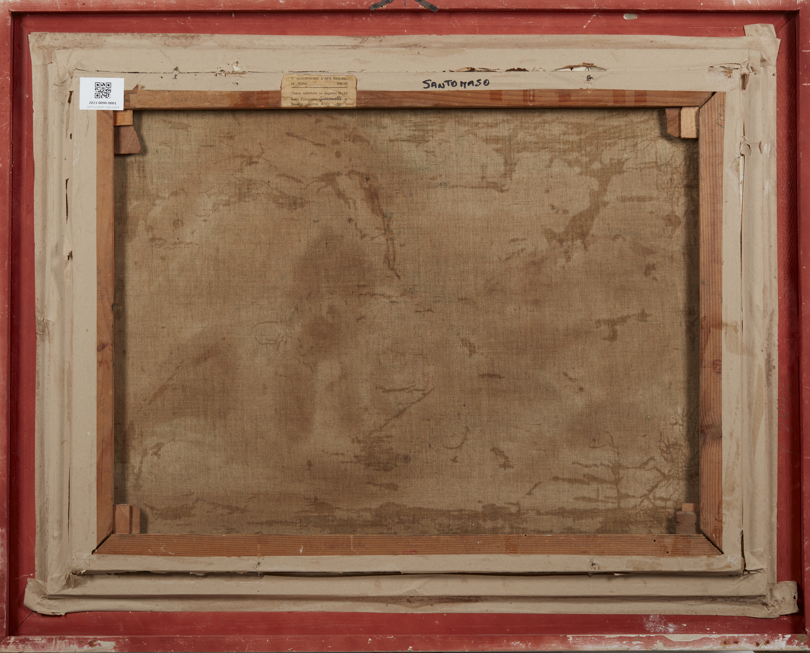 SANTOMASO GIUSEPPE (1907 - 1990) Composizione. 1943. Olio su tela . Cm 80,00 x 60,00. Al retro cartiglio della IV Quadriennale d'Arte Nazionale di Roma, 1943. Opera archiviata presso la Galleria Blu - Archivio Giuseppe Santomaso, Milano, come da documentazione allegata all'opera riportante il relativo numero d'inventario (copia). Esposizione: IV Quadriennale d'Arte Nazionale di Roma, 1943. Difetti. Cornice presente