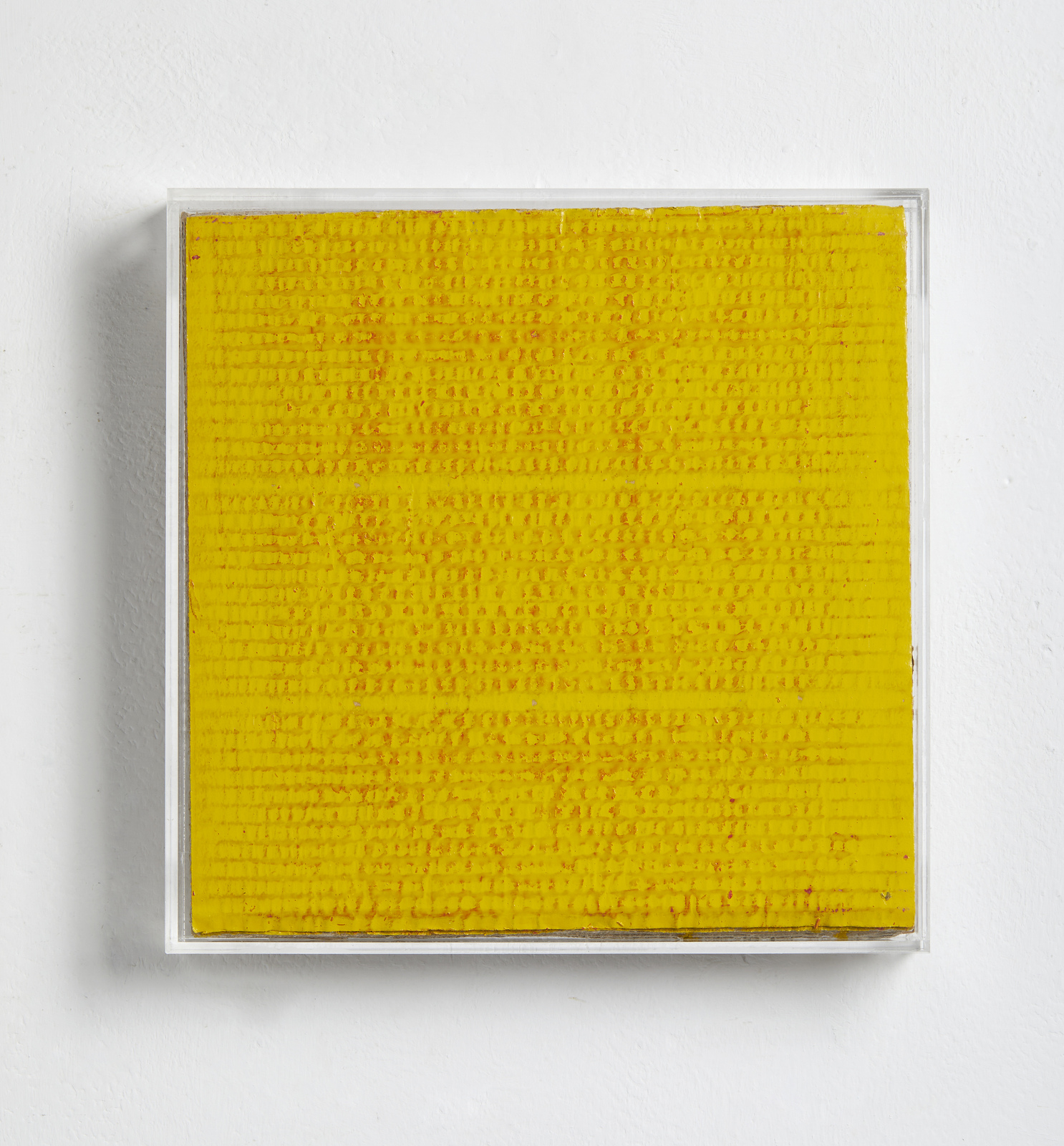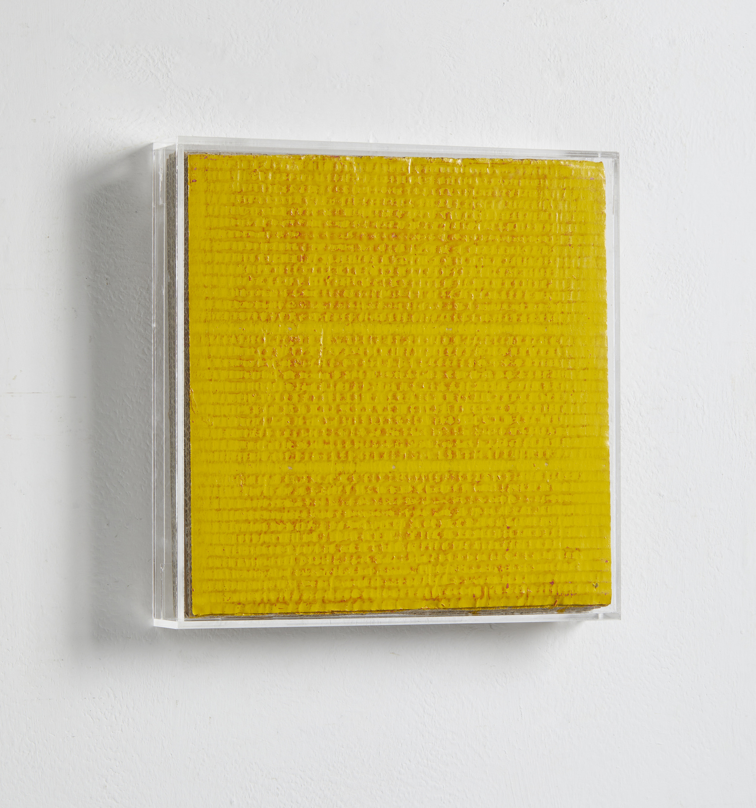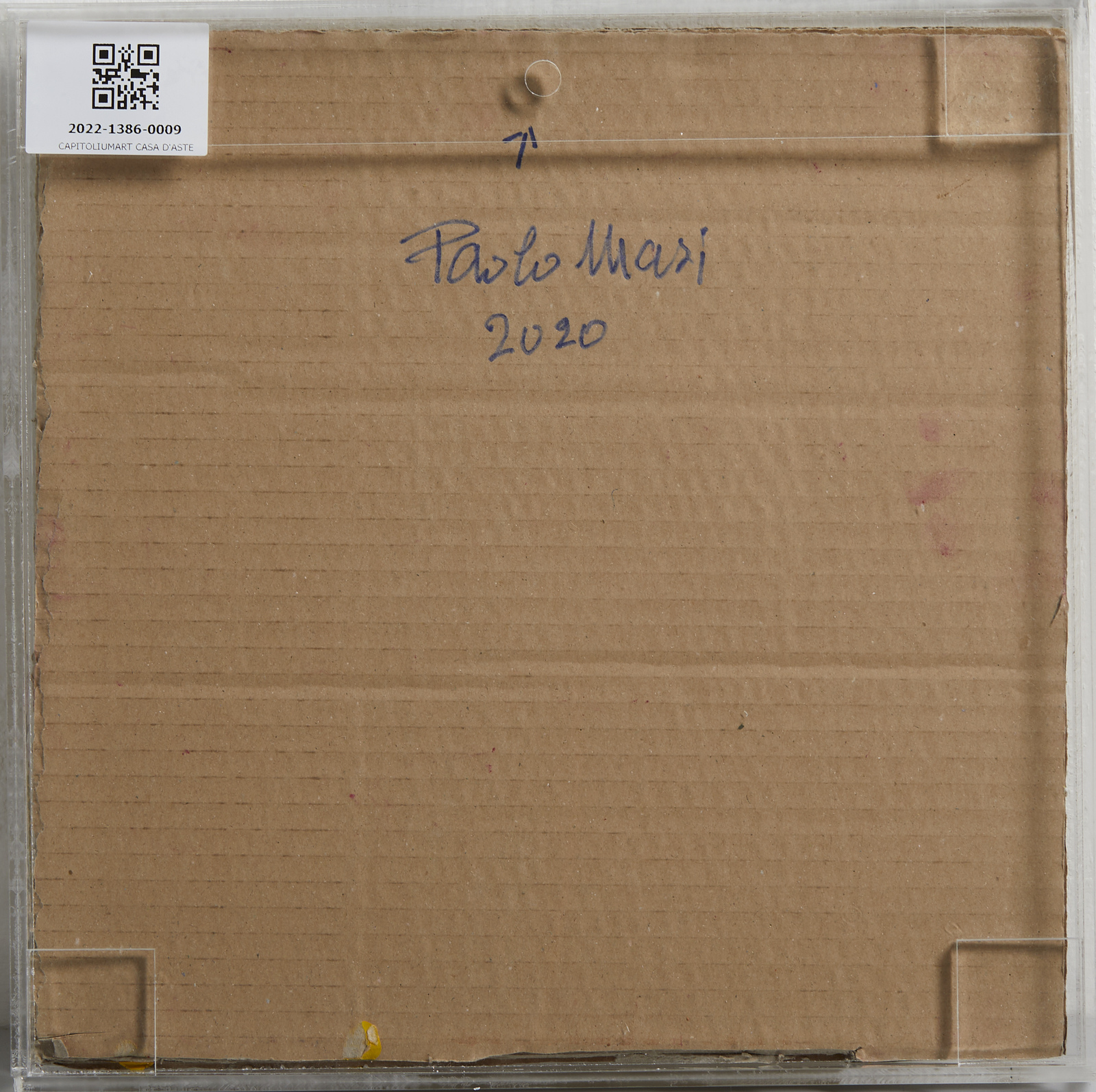 MASI PAOLO (n. 1933) Senza titolo. 2020. Tecnica mista su cartone. Cm 30,00 x 30,00. Al retro firma e anno. Autentica dell'artista su fotografia. Entro teca in plexiglass.