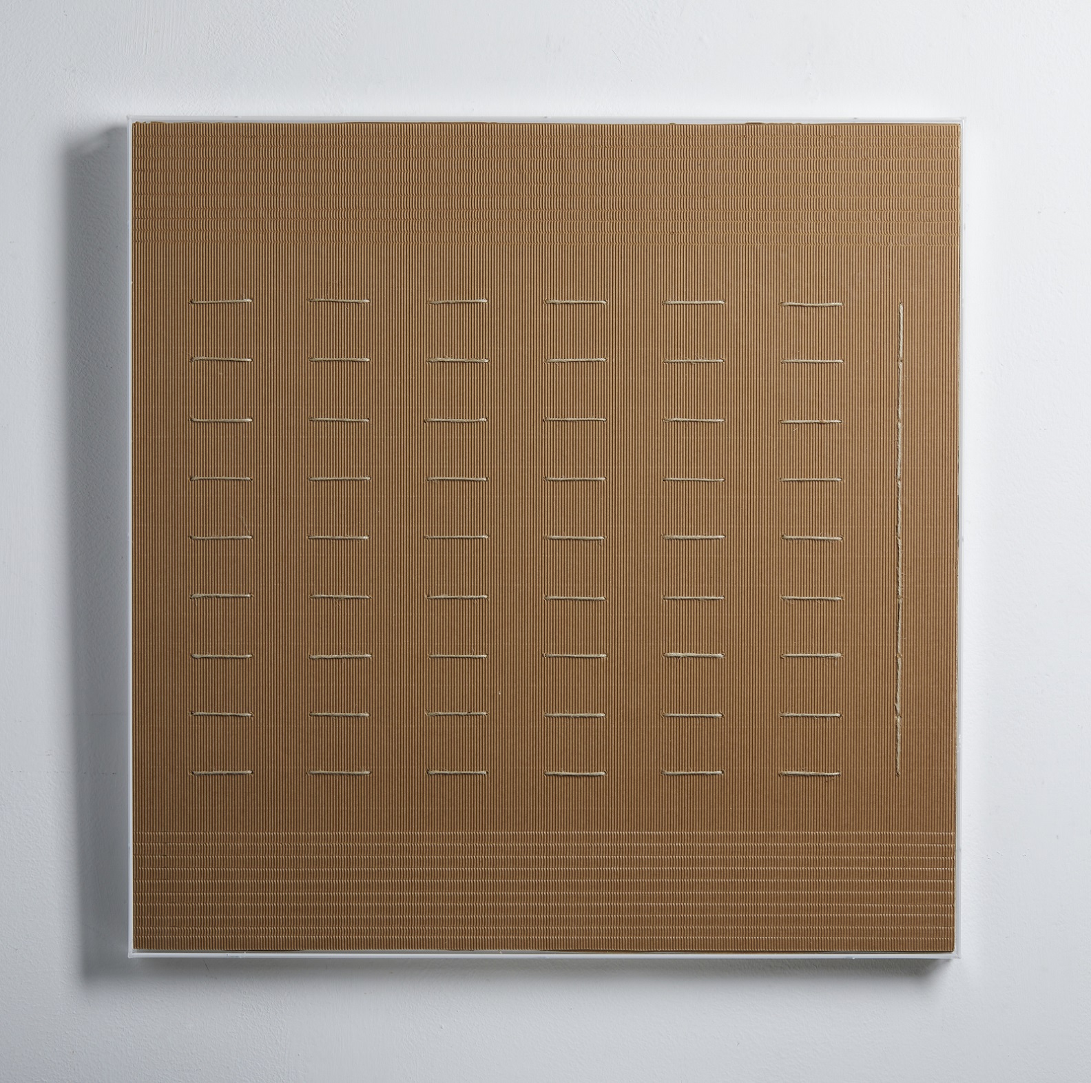 MASI PAOLO (n. 1933) Senza titolo. 2011. Tecnica mista su cartone. Cm 70,00 x 70,00. Al retro firma e anno. Autentica dell'artista su fotografia. Entro teca in plexiglass. Cornice presente