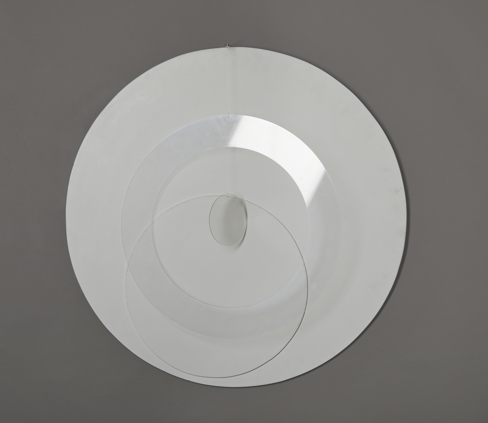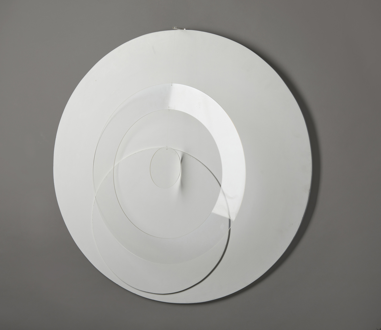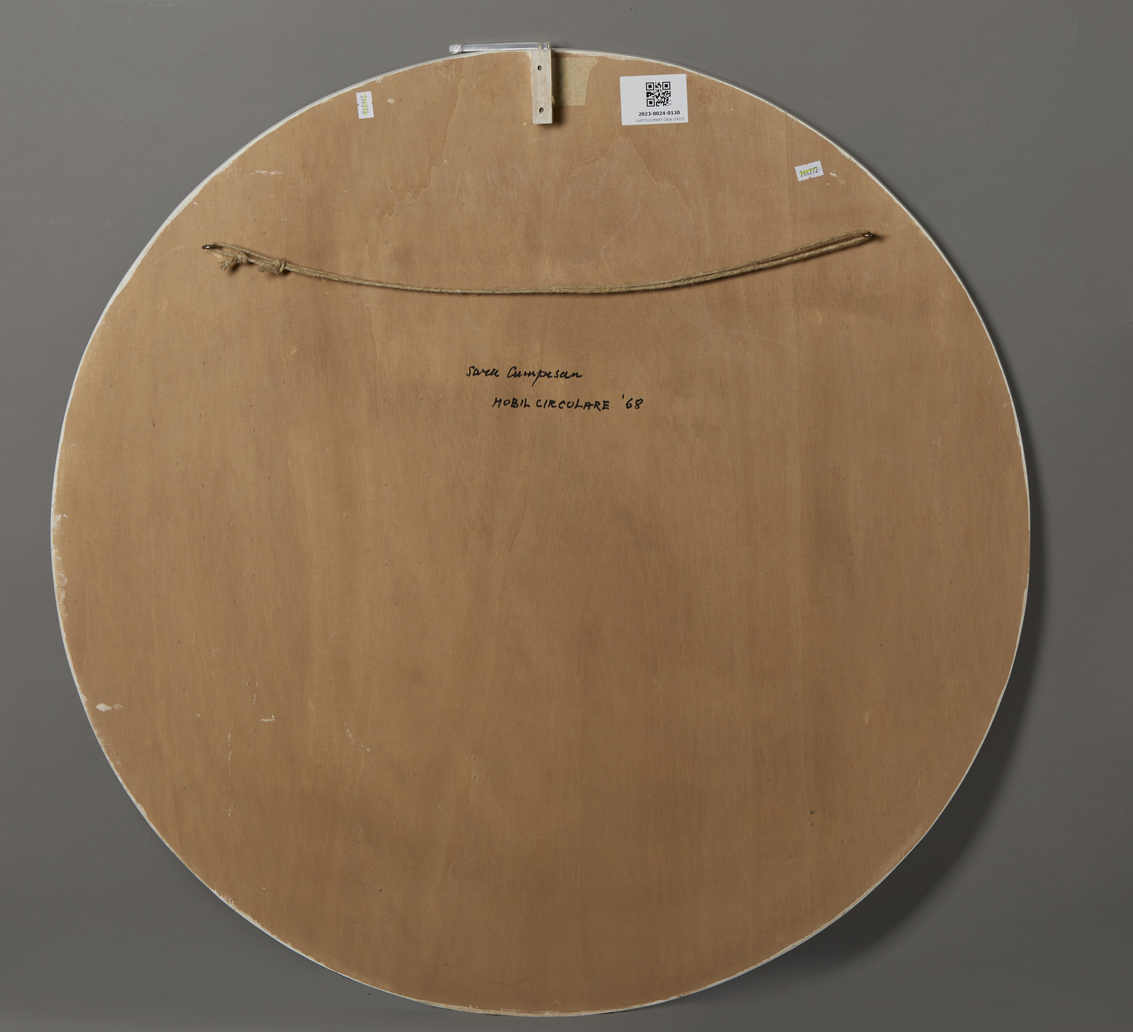 CAMPESAN SARA (n. 1924) Mobil circolare. 1968. tecnica mista su tavola e plexiglass. Cm 80,00 x 80,00. Al retro titolo, firma e anno. Autentica dell'artista su fotografia. Certificato di provenienza Casati Arte Contemporanea, Muggiò. Lievi difetti.