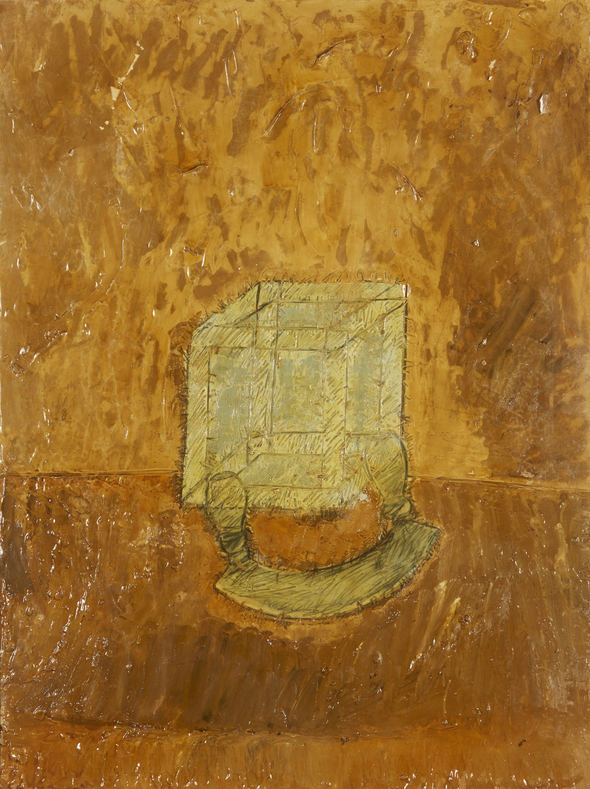 COSTA CLAUDIO (1942 - 1995) - Scatola e mezzaluna su fondo ocra.