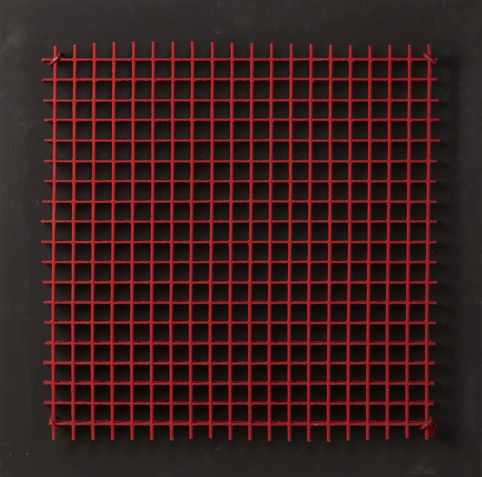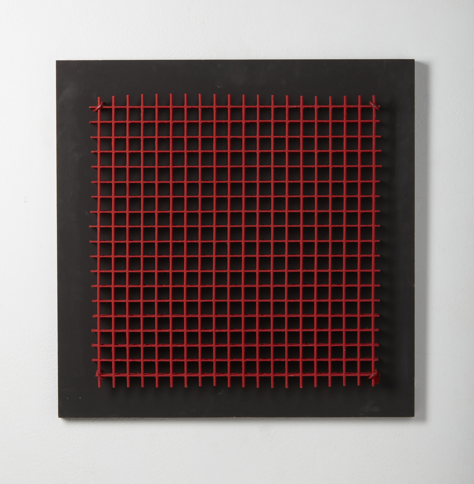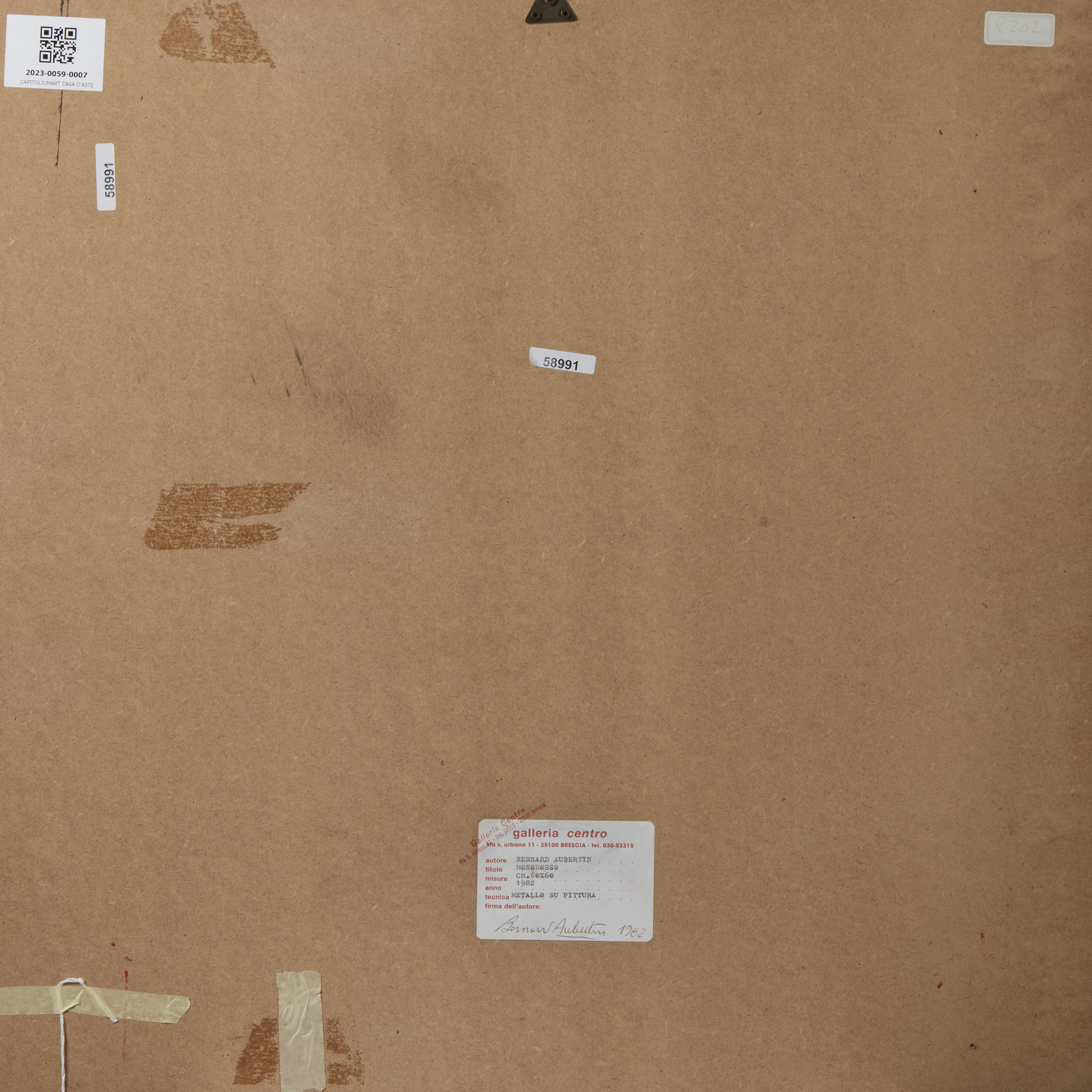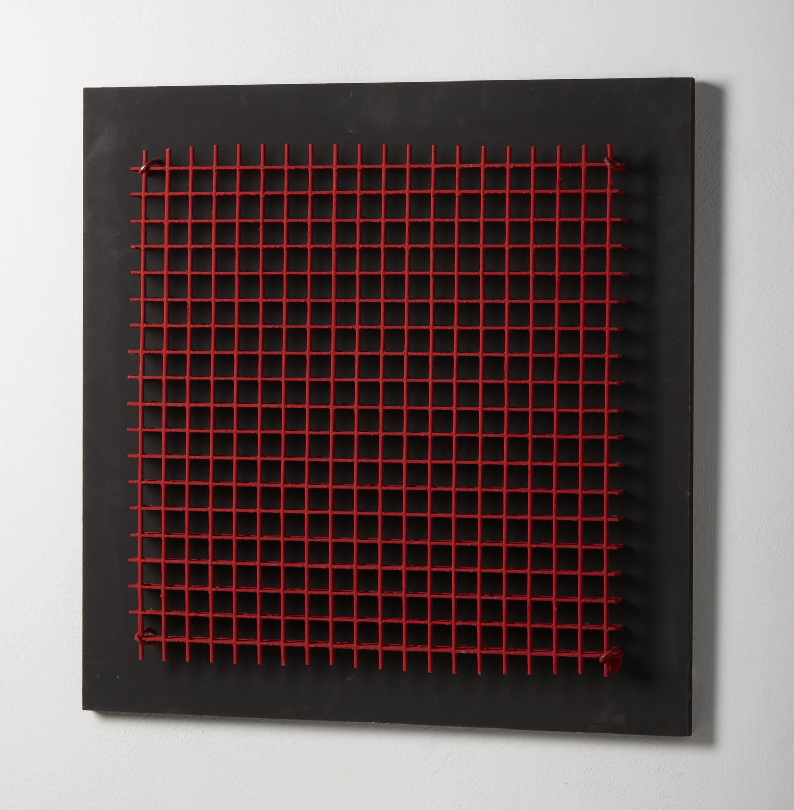 AUBERTIN BERNARD (1934 - 2015) Monorosso. 1982. Metallo dipinto. Cm 60,00 x 60,00. Al retro cartiglio descrittivo Galleria Centro, Brescia, con firma e anno. Opera archiviata presso l'Archivio Bernard Aubertin, Brescia, come da documentazione fotografica allegata all'opera riportante il relativo numero d'inventario. Lievi difetti.