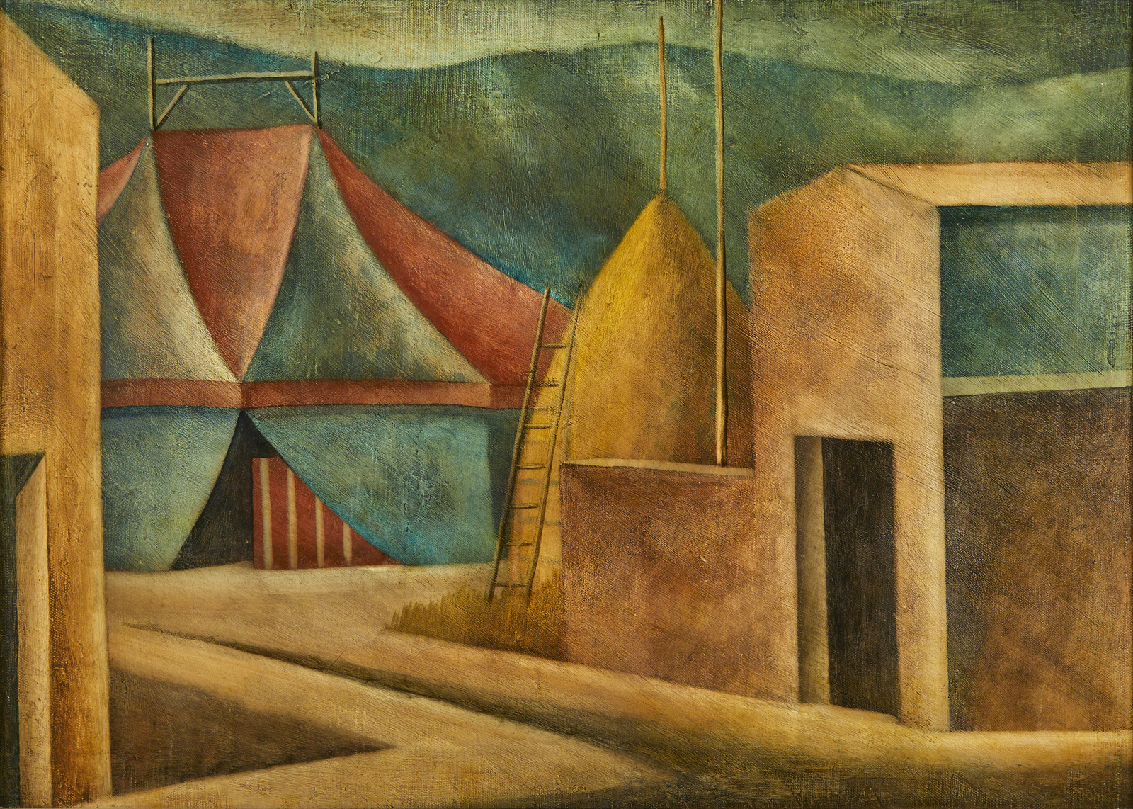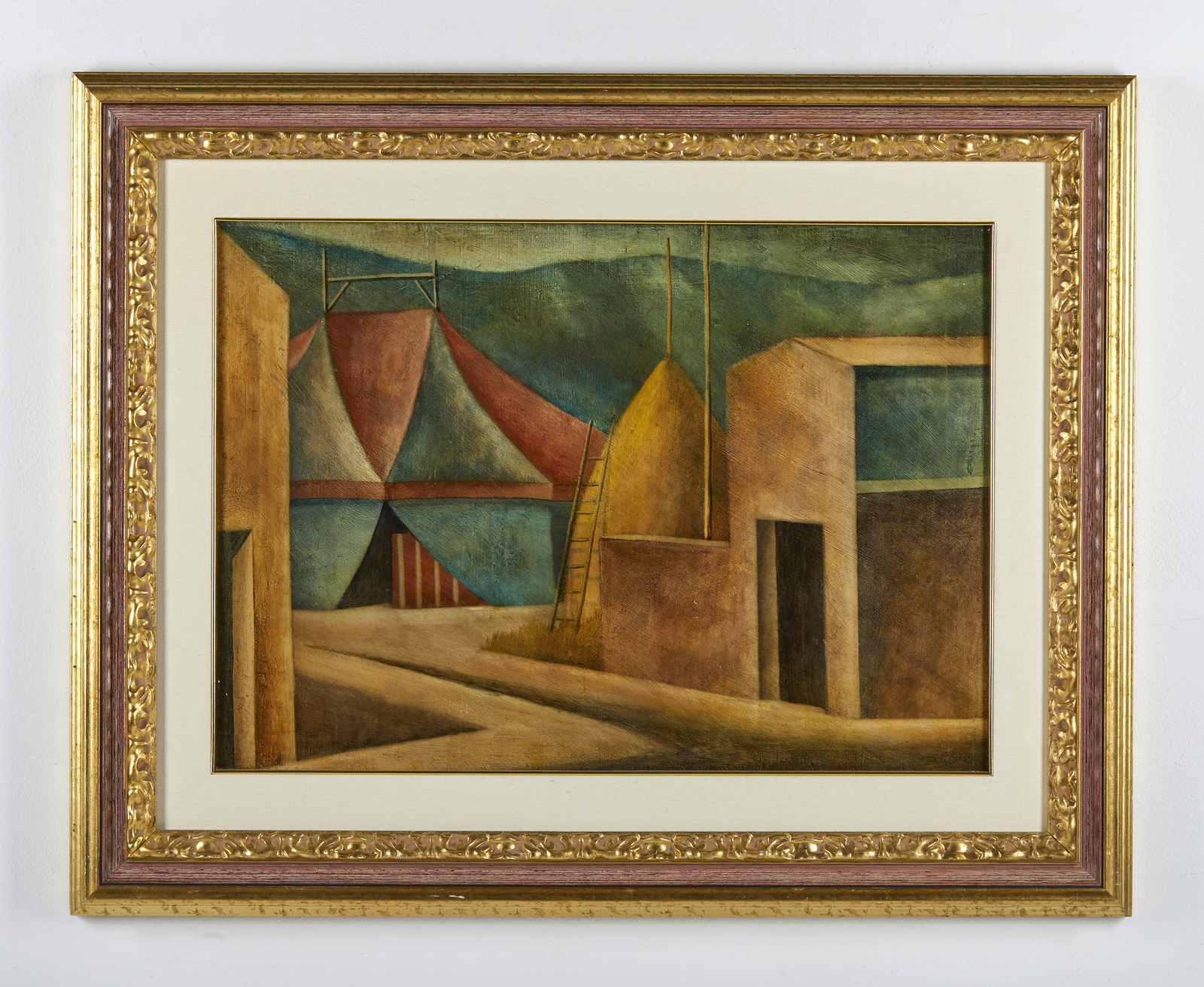 SCUFFI MARCELLO (n. 1948) Senza titolo. Olio su tela . Cm 70,00 x 50,00. Autentica dell'artista su fotografia con cartiglio descrittivo della Galleria d'arte Orler, Favaro Veneto, 1978-1979. Lievi difetti. Cornice presente