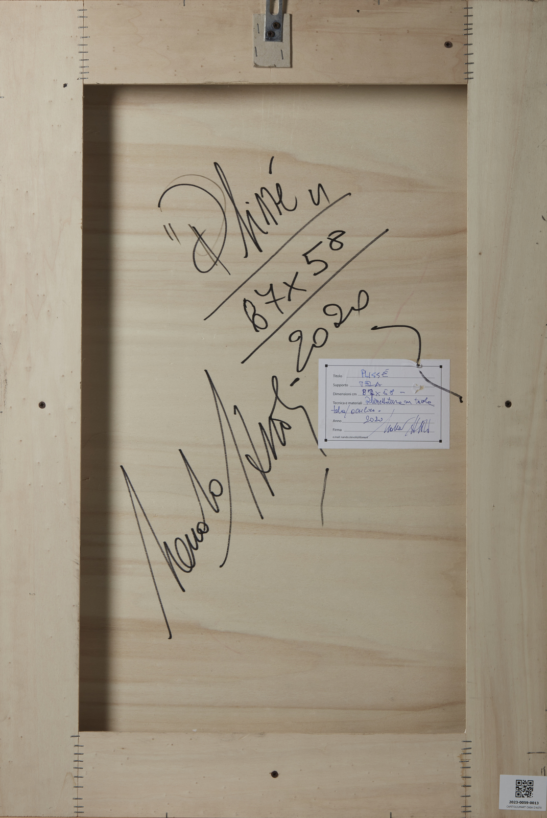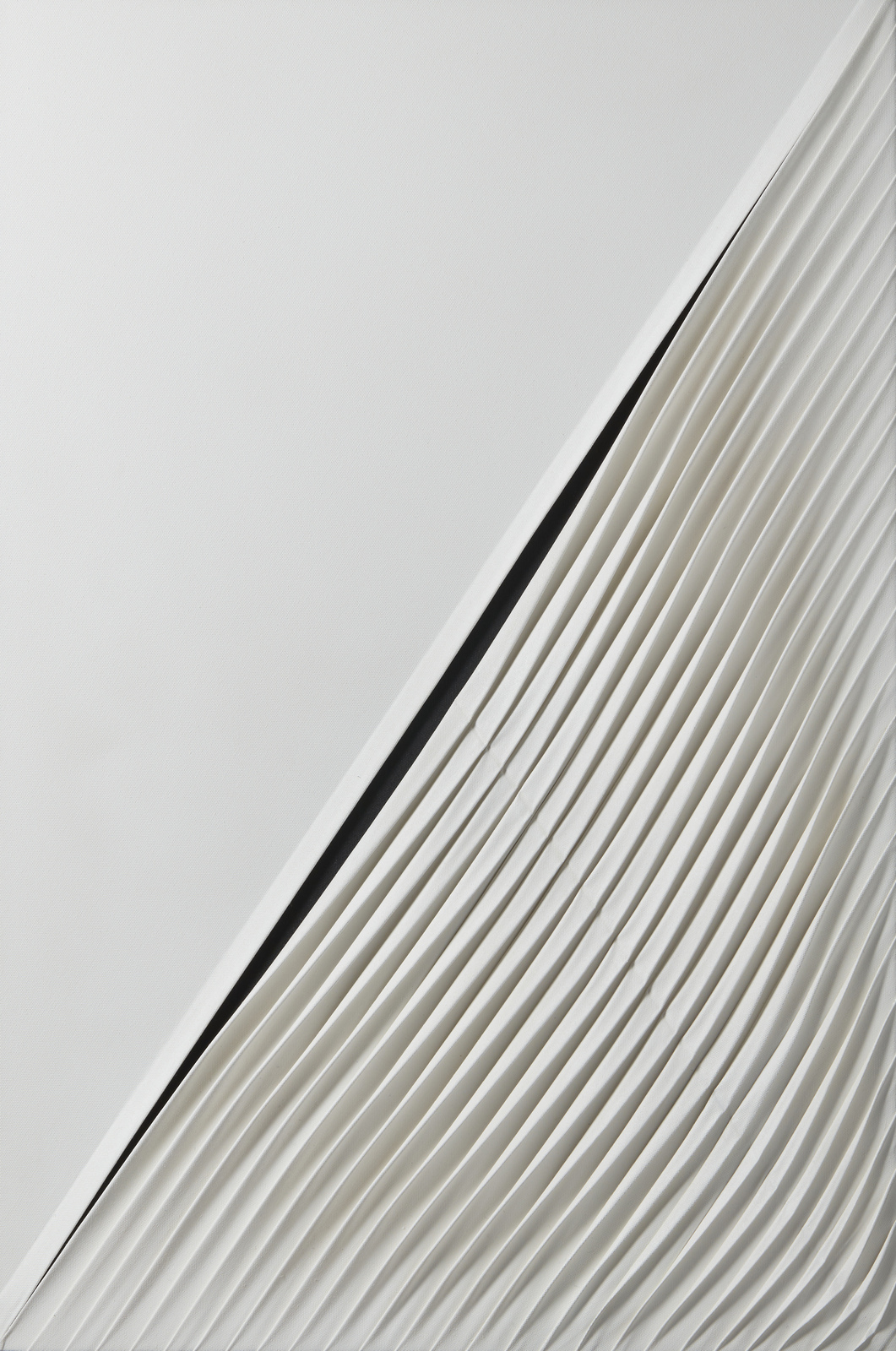 STEVOLI NANDO (n. 1953) Plissé. 2020. Tecnica mista su tela su tavola. Cm 58,00 x 87,00. Al retro titolo, firma, anno e cartiglio descrittivo dell'artista. Cornice presente
