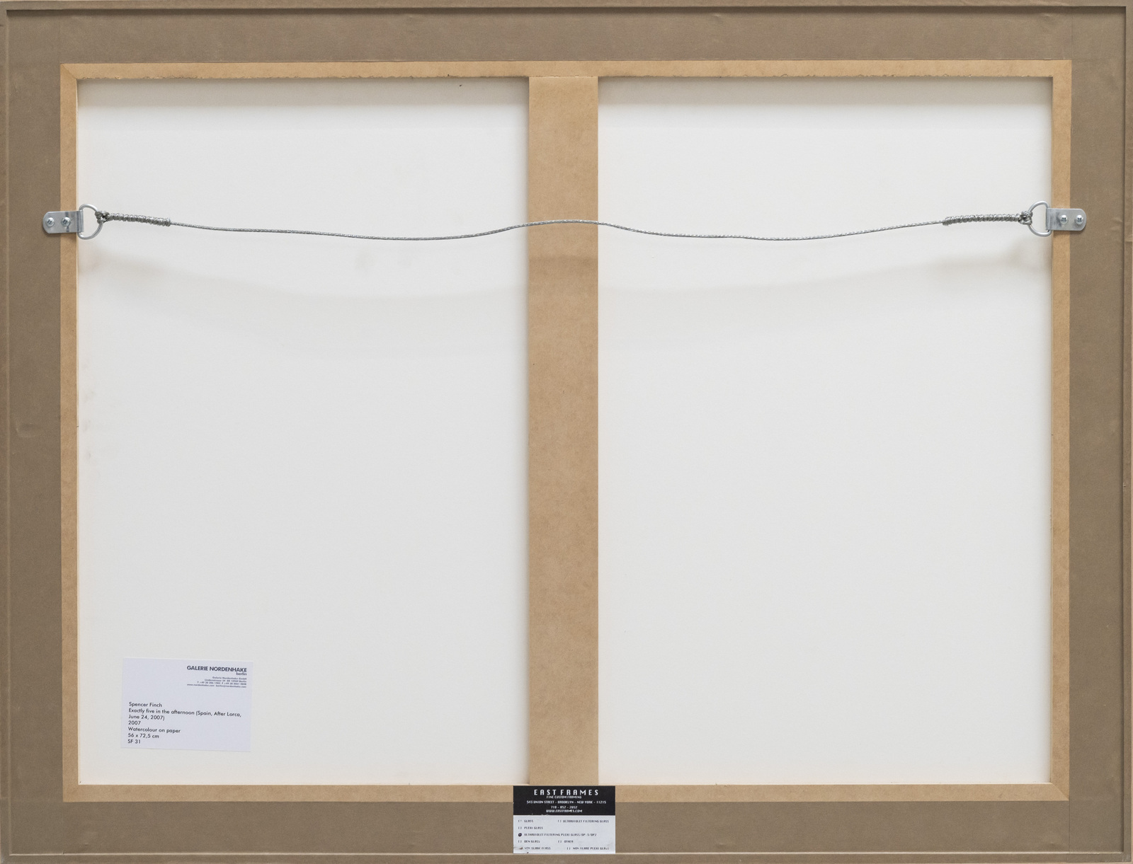 FINCH SPENCER (n. 1962) Exactly five in the afternoon (Spain, After Lorca, June 24, 2007). 2007. Acquerello su carta. Cm 76,00 x 56,00. Titolo in basso al centro. Al retro cartiglio descrittivo Galerie Nordenhake, Berlino. Provenienza: Galerie Nordenhake, Berlino; Collezione privata, Roma.