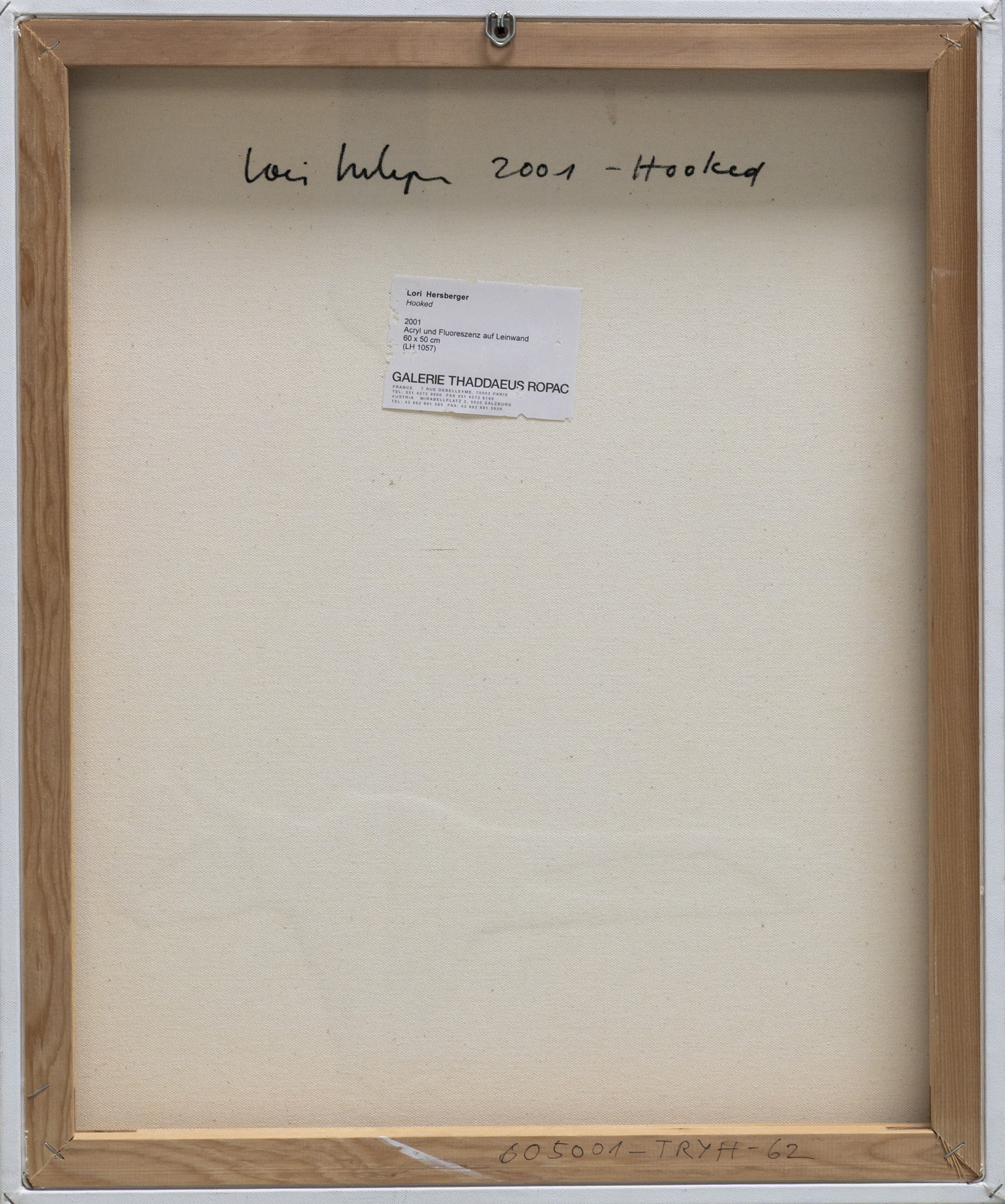 HERSBERGER LORI (n. 1964) Hooked. 2001. Acrilico su tela. Cm 50,00 x 60,00. Al retro titolo, firma, anno e cartiglio descrittivo Galerie Thaddeus Ropac, Parigi. Provenienza: Galerie Thaddeus Ropac, Parigi; Collezione privata, Roma