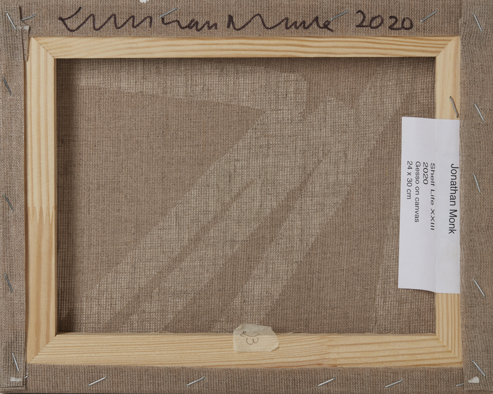 MONK JOHNATAN (n. 1969) Shelf life XXIII. 2020. Tecnica mista su tela. Cm 24,00 x 30,00. Al retro firma, anno e cartiglio descrittivo dell'artista.