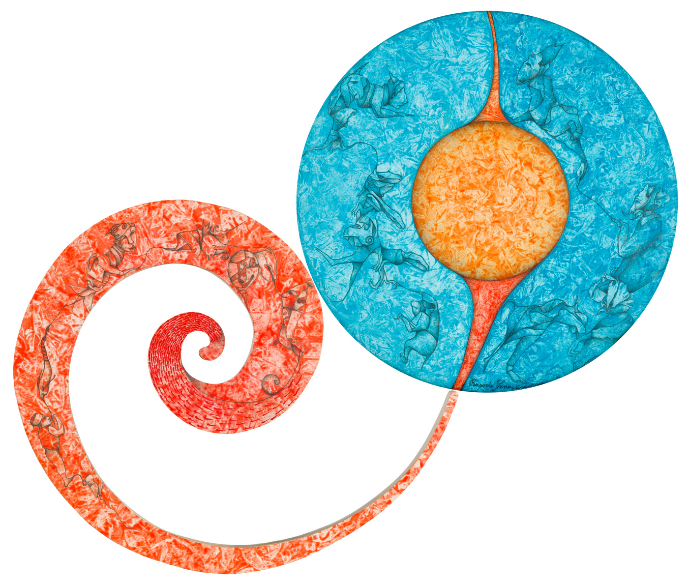 Rosario Genovese (Catania 1953) - Progetto EU 1630 – 472 cm 80 x 50 Acrilico e matita su tela Rosario Genovese è un artista nato a Catania nel 1953 che ha frequentato l'Istituto d'Arte e l'Accademia di Belle Arti della stessa città, dove in seguito è stato docente di Decorazione. Nel corso della sua carriera artistica, ha affrontato varie tematiche e stili pittorici, partendo dal realismo pittorico e fotografico degli anni '70 per poi approdare al concetto di mimesi cosmologica negli anni '90. La sua produzione artistica comprende opere su supporti tridimensionali e bidimensionali, che rappresentano astri, pianeti, galassie e costellazioni, esplorando le stelle doppie, le binarie a contatto, le pulsar e i buchi neri binari.