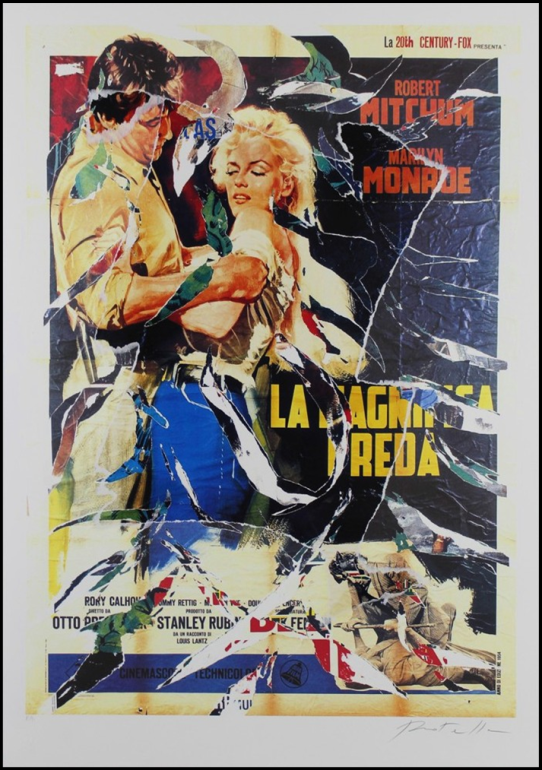 ROTELLA MIMMO Catanzaro 1918 - Milano 2006 "La magnifica preda" Multiplo décollage e strappi di manifesto su supporto serigrafico su cartoncino cm 70x100, del 2000-2009. Firmato sul fronte in basso a destra, tiratura P.A. Opera pubblicata sul catalogo "Mimmo Rotella Multiples décollage".