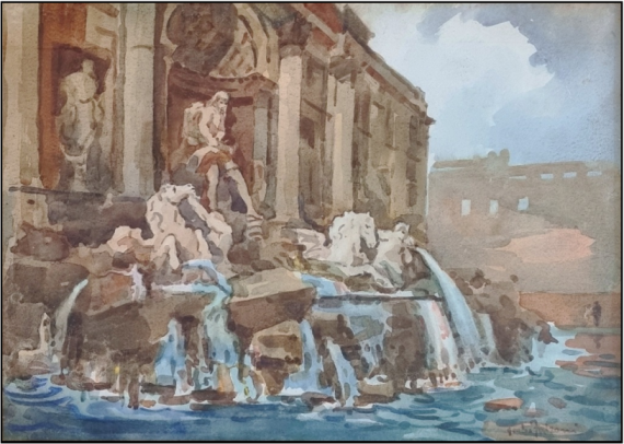 FALZONI GIULIO Marmirolo 1900 - Milano 1979 "Roma Fontana di Trevi"