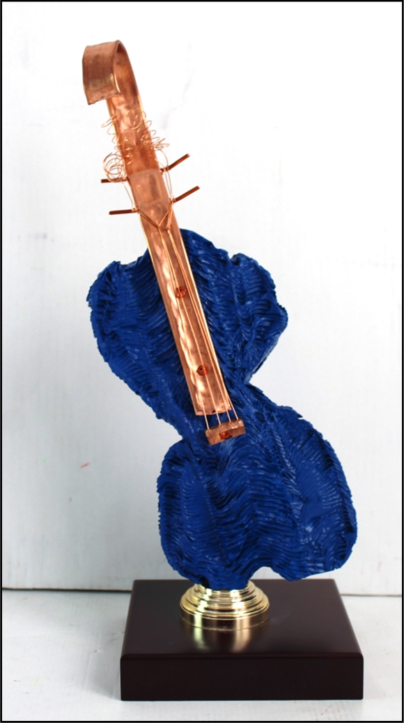 M'HORO' Italia XX sec. "Violino" Scultura in resina e manico in rame, cm 45x16x6. Esemplare 2/99. Autentica dell'artista su foto.