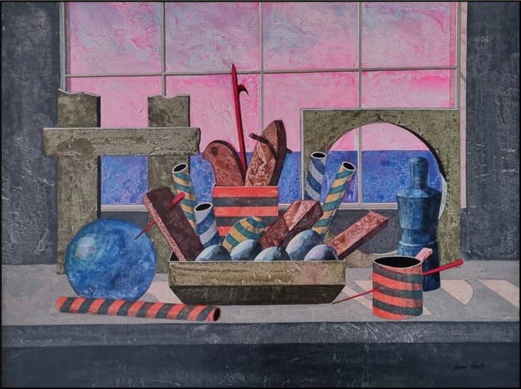 CAPUTO TONINO Lecce 1933 - 2021 "L'arpione" Olio su tela cm 80x60 del 1987. Firmato sul fronte in basso a destra. Sul retro firma e timbro della Galleria "Il Castello di Adria". Autentica su foto.