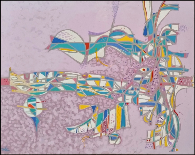 TULLI WLADIMIRO Macerata 1922 - 2003 "Per Vieira Da Silva" Acrilici su tela applicata su tavola, cm 100x80 del 1977. Opera firmata sul fronte in basso a sinistra, sul retro titolo e anno.