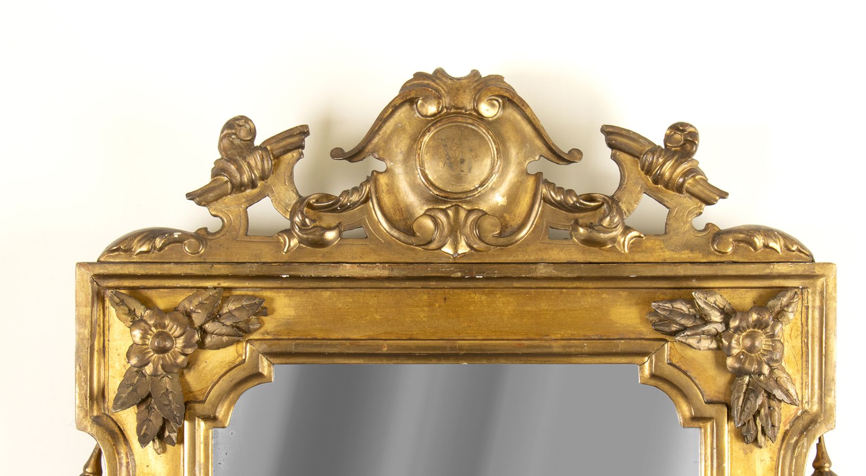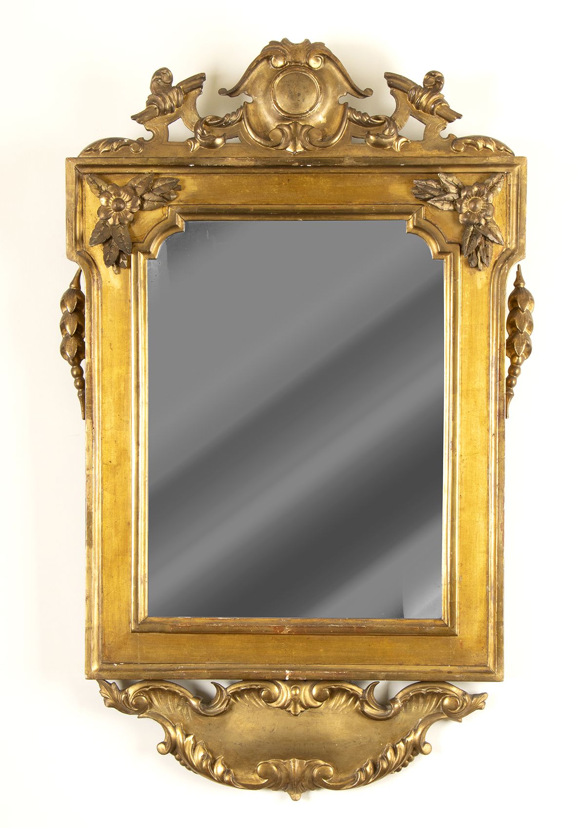 Specchiera italiana dorata con cimasa - XVIII secolo