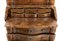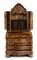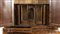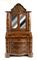 lastronato in legno di noce su struttura di pioppo. Il mobile è a due corpi, la parte superiore con due sportelli a specchi e due sportelli nascosti sui fianchi. Il corpo inferiore a 4 cassetti più un cassetto nascosto alla base.