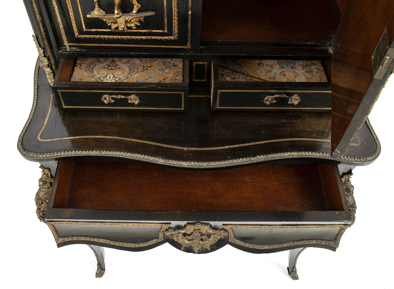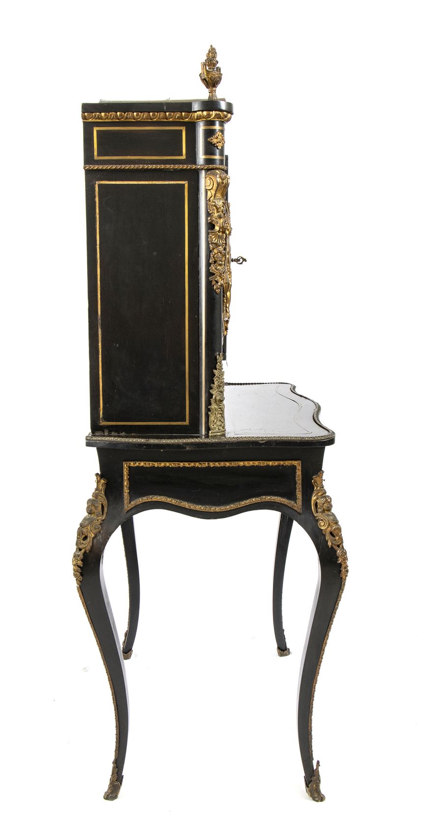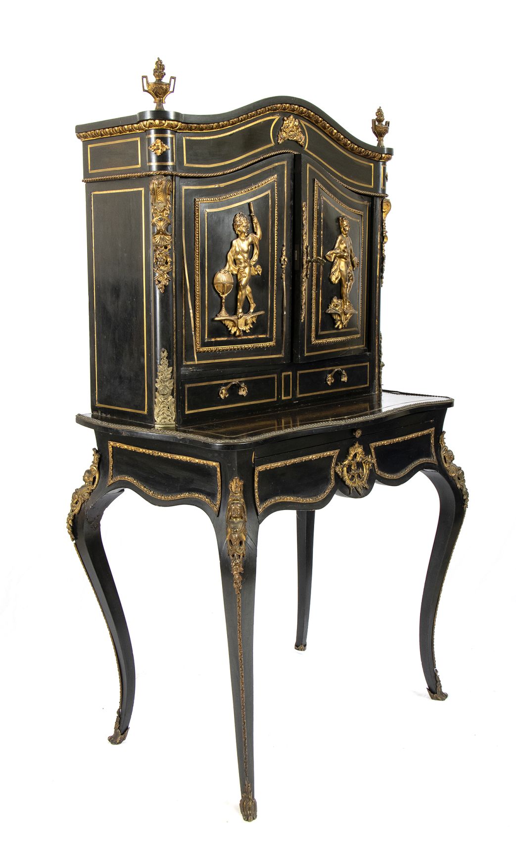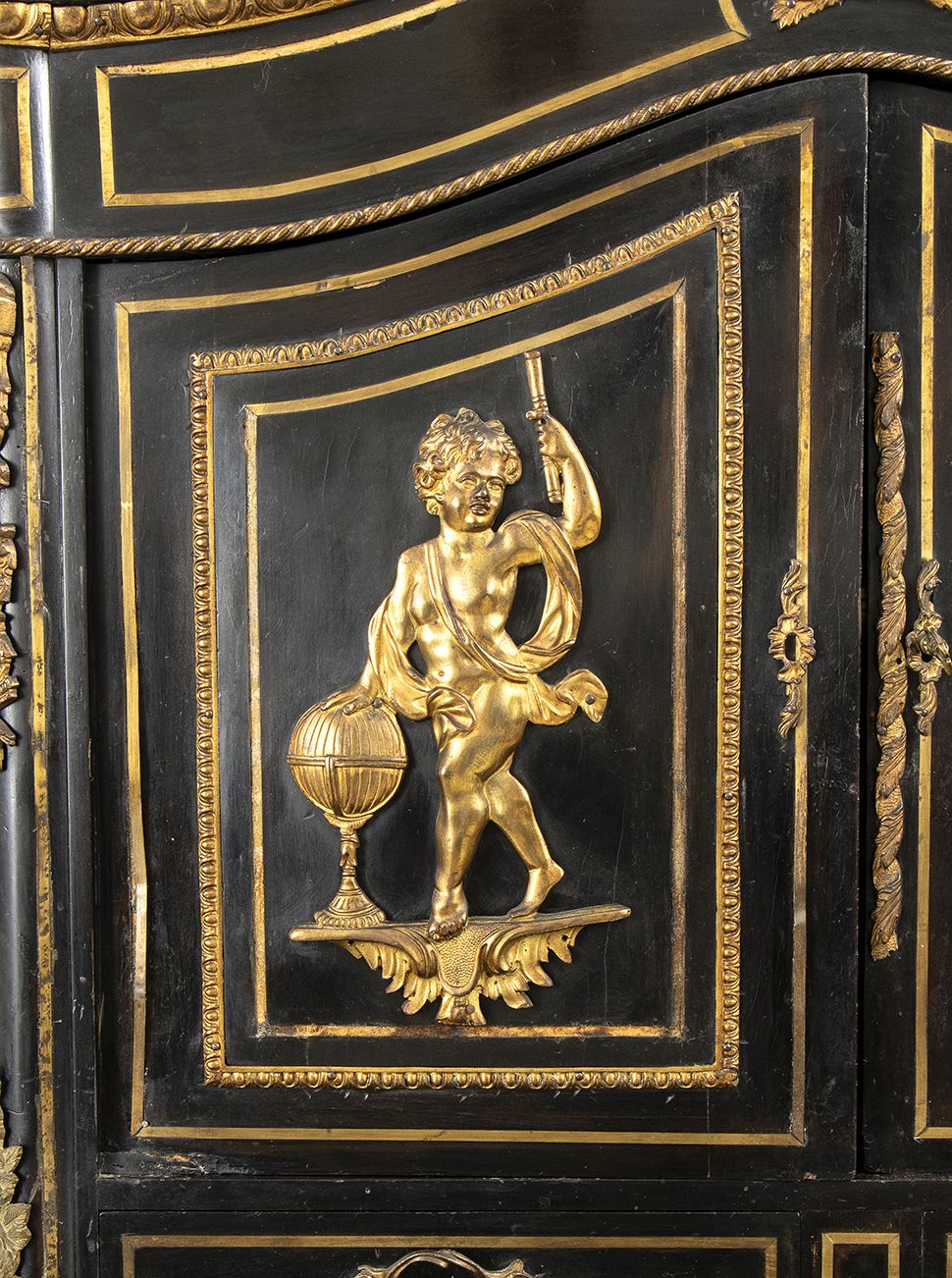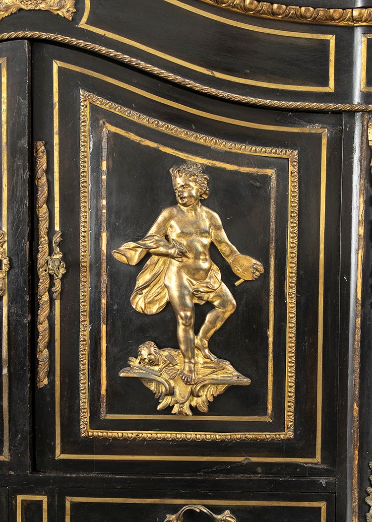 ebanizzato con applicazioni in bronzo dorato di fine cesellatura. Francia meta XIX secolo. Altezza x larghezza x profondità : 145 x 83 x 47 cm. Stato di conservazione: *** discreto.