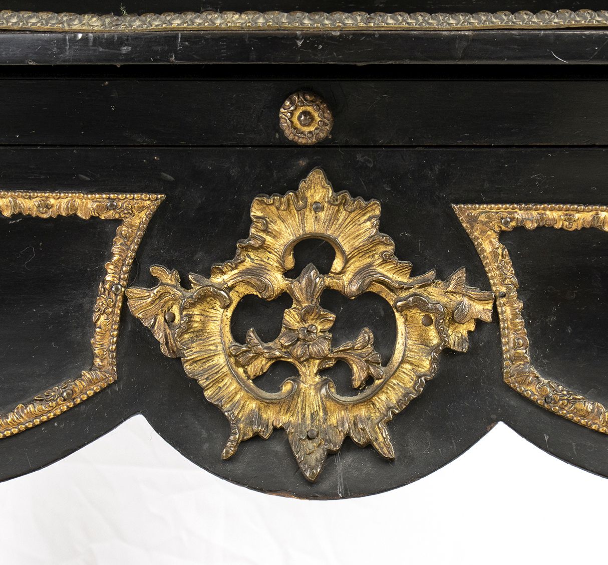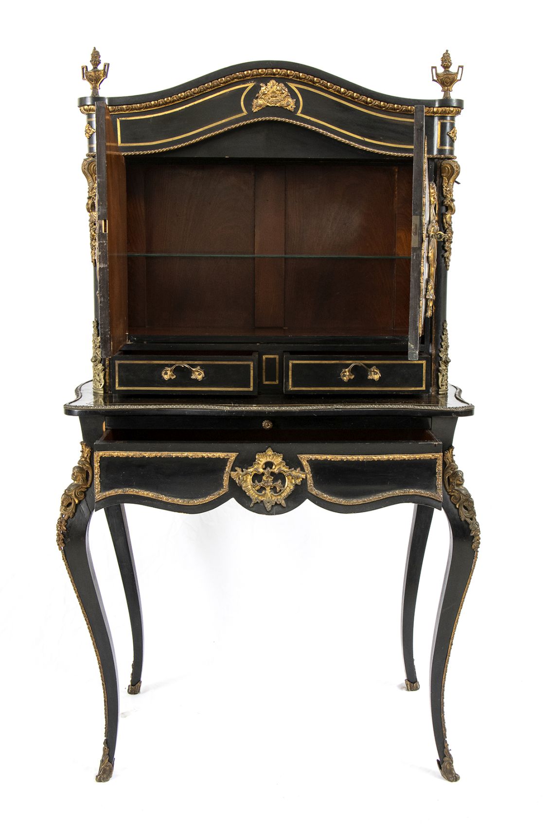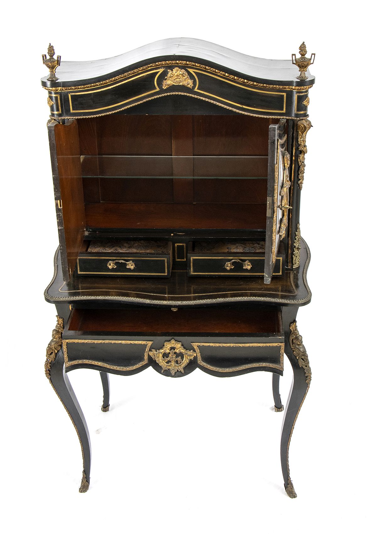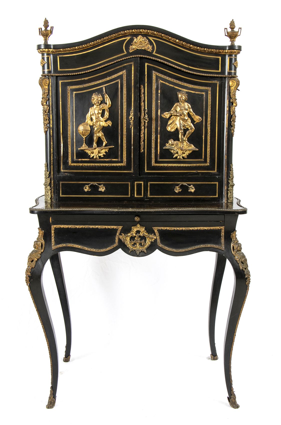 ebanizzato con applicazioni in bronzo dorato di fine cesellatura. Francia meta XIX secolo. Altezza x larghezza x profondità : 145 x 83 x 47 cm. Stato di conservazione: *** discreto.