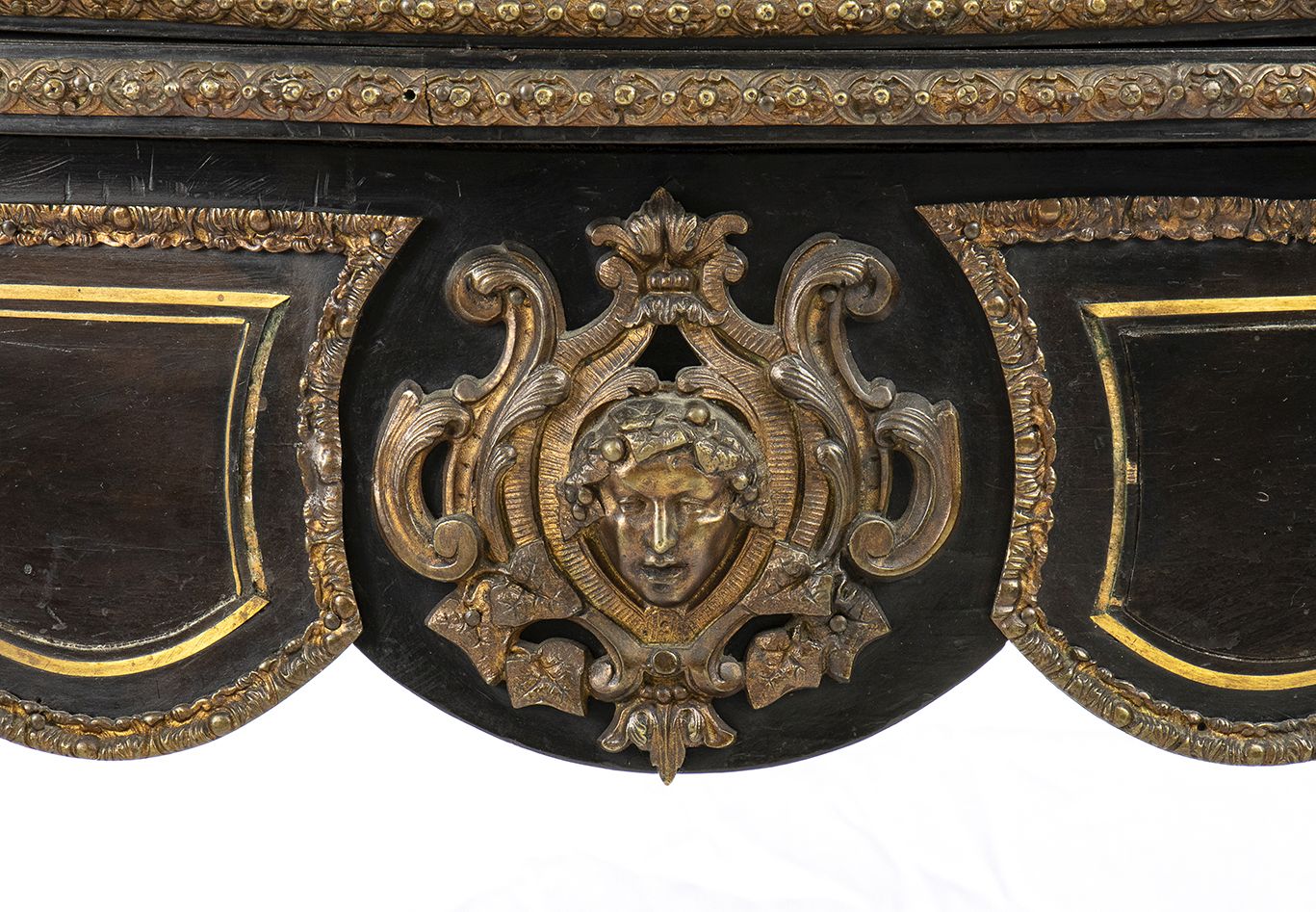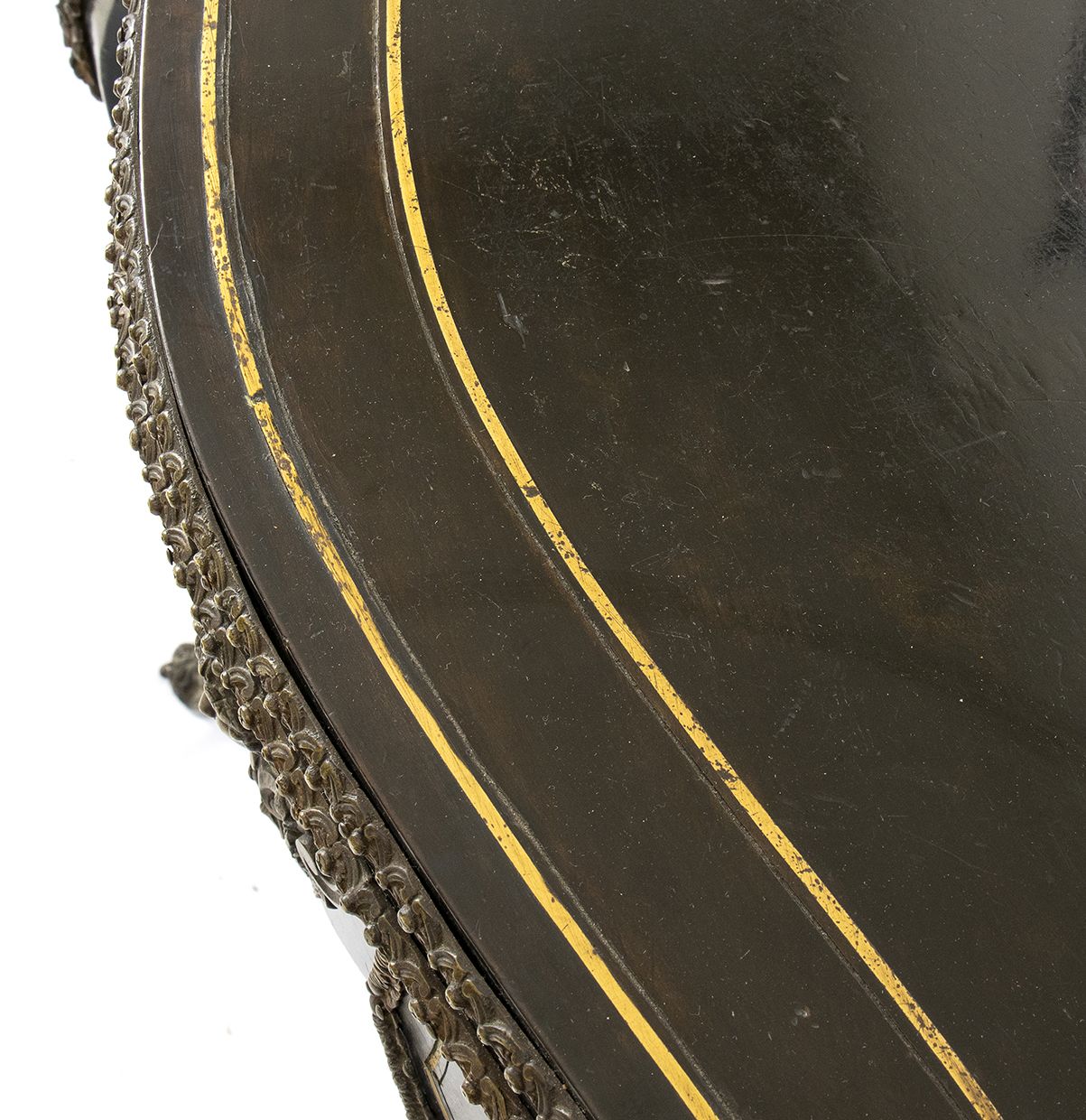 da centro, in legno ebanizzato con applicazioni in bronzo e filettato in ottone