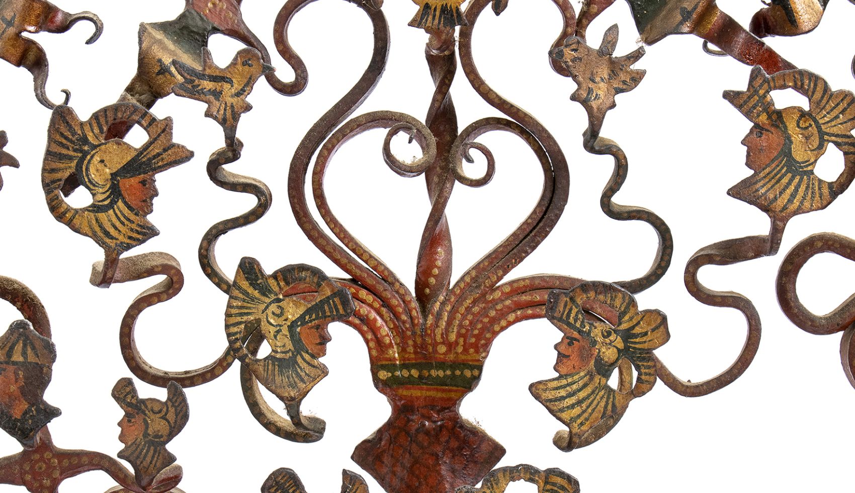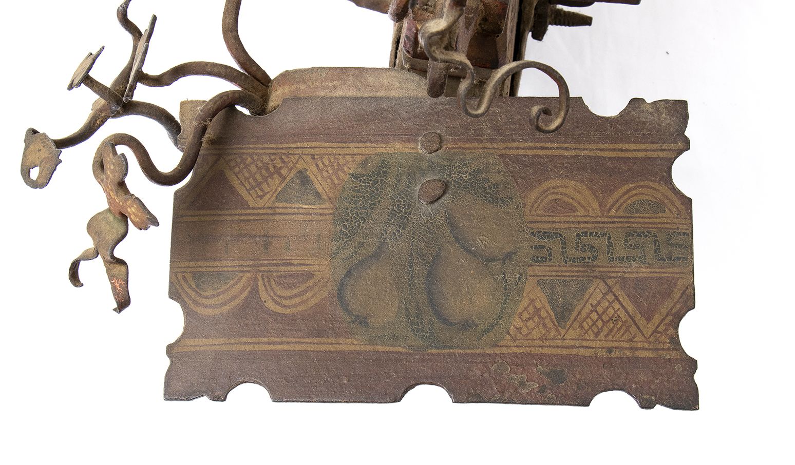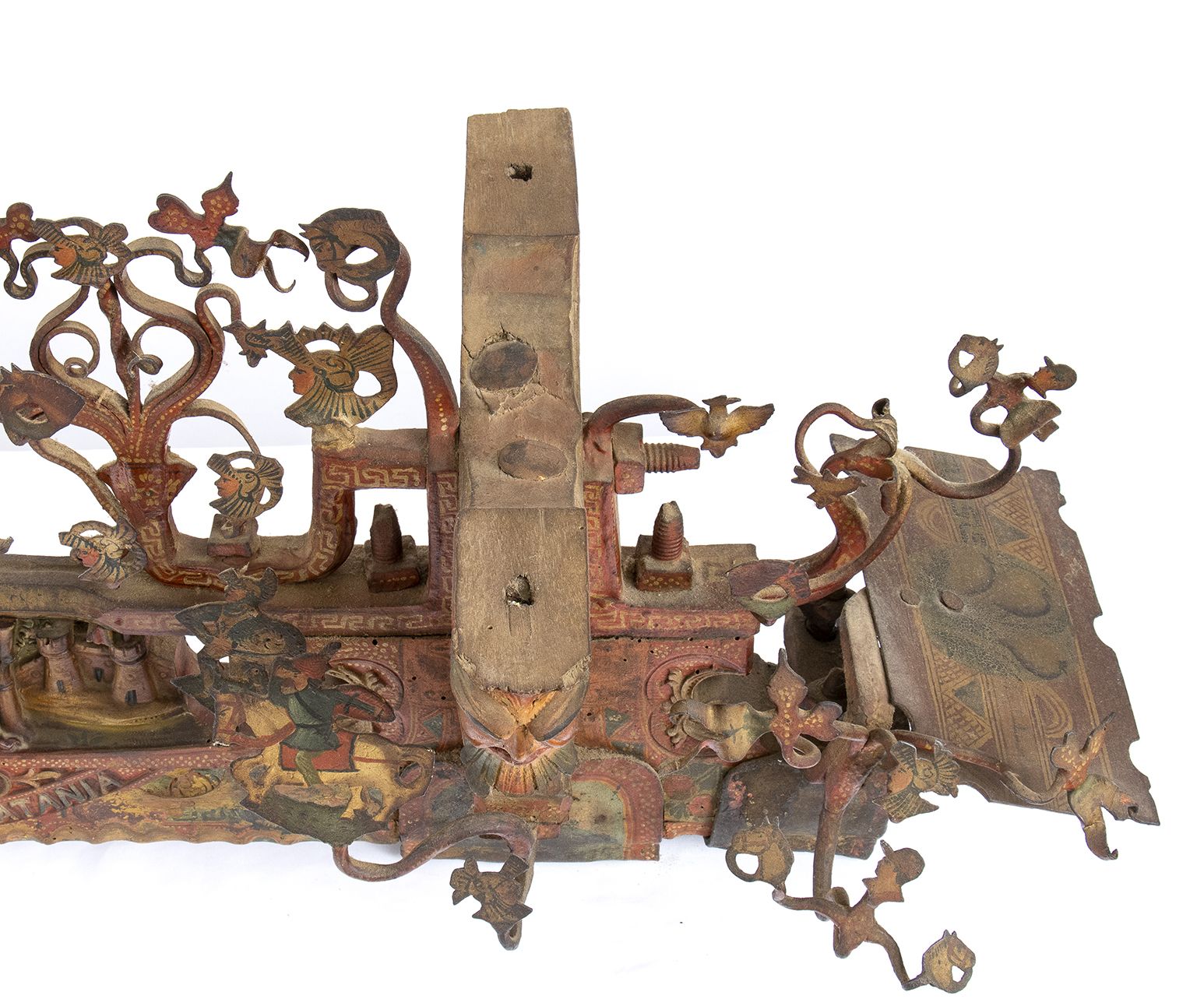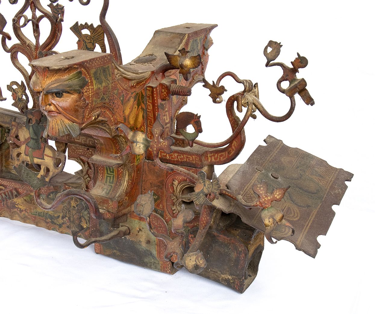 traversa posteriore di un carretto siciliano riccamente decorato con la Chanson de Roland (la notte di San Bartolomeo). Sul fronte è presente l’iscrizione del carratore “ La Spina Carmelo - Catania - 24 agosto".