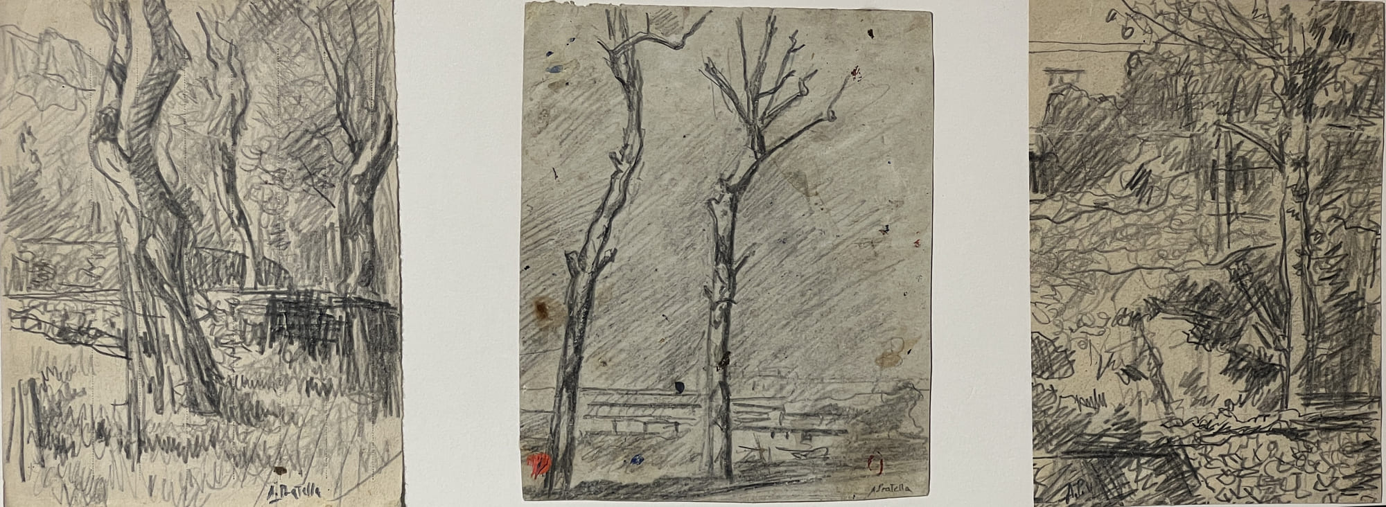 2. Alberi potati, matita su carta, firma: in basso a destra, misure: cm 13 x 10,5