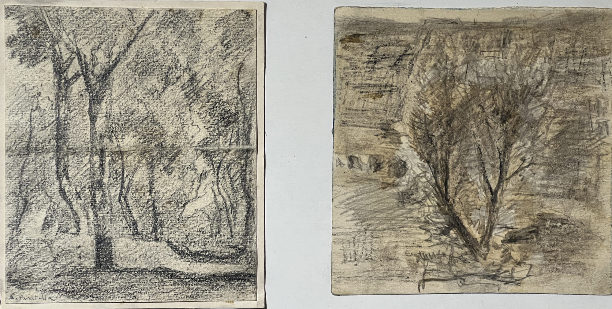 1. Studio di alberi a Capri, matita su carta, firma: in basso a sinistra, misure: cm 13 x 11