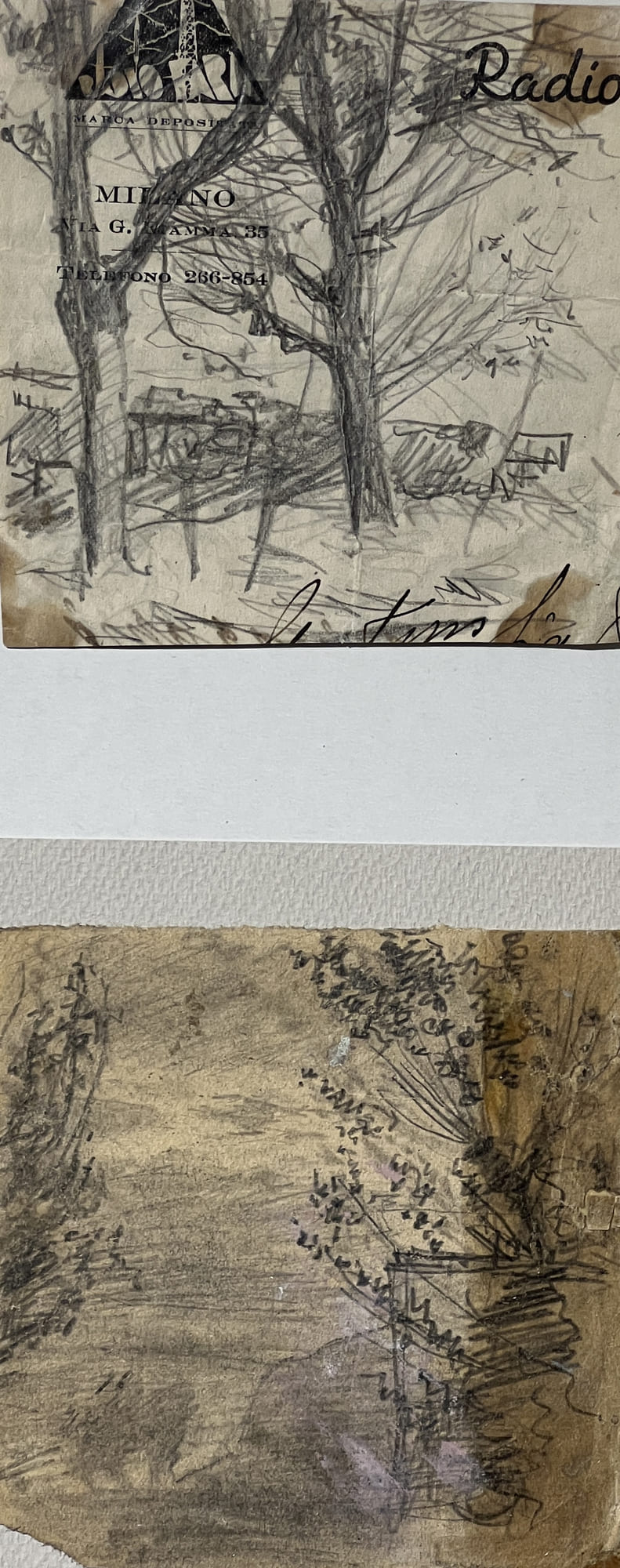 1. Studio di due alberi, matita su carta, firma: opera non firmata, misure: cm 11 x 10,5