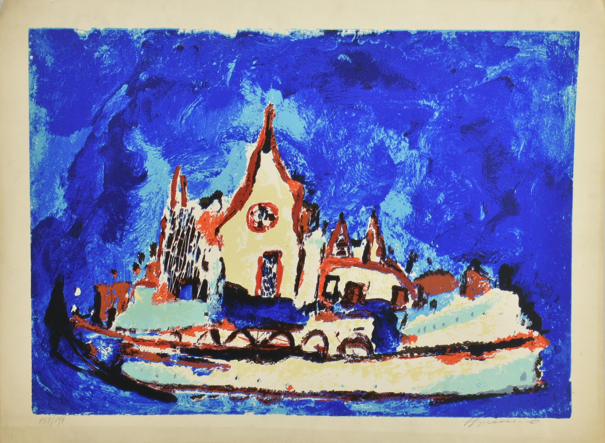Corrado Spaziani CHIESETTA SVIZZERA litografia su carta, cm 58x78 es. 158/199...