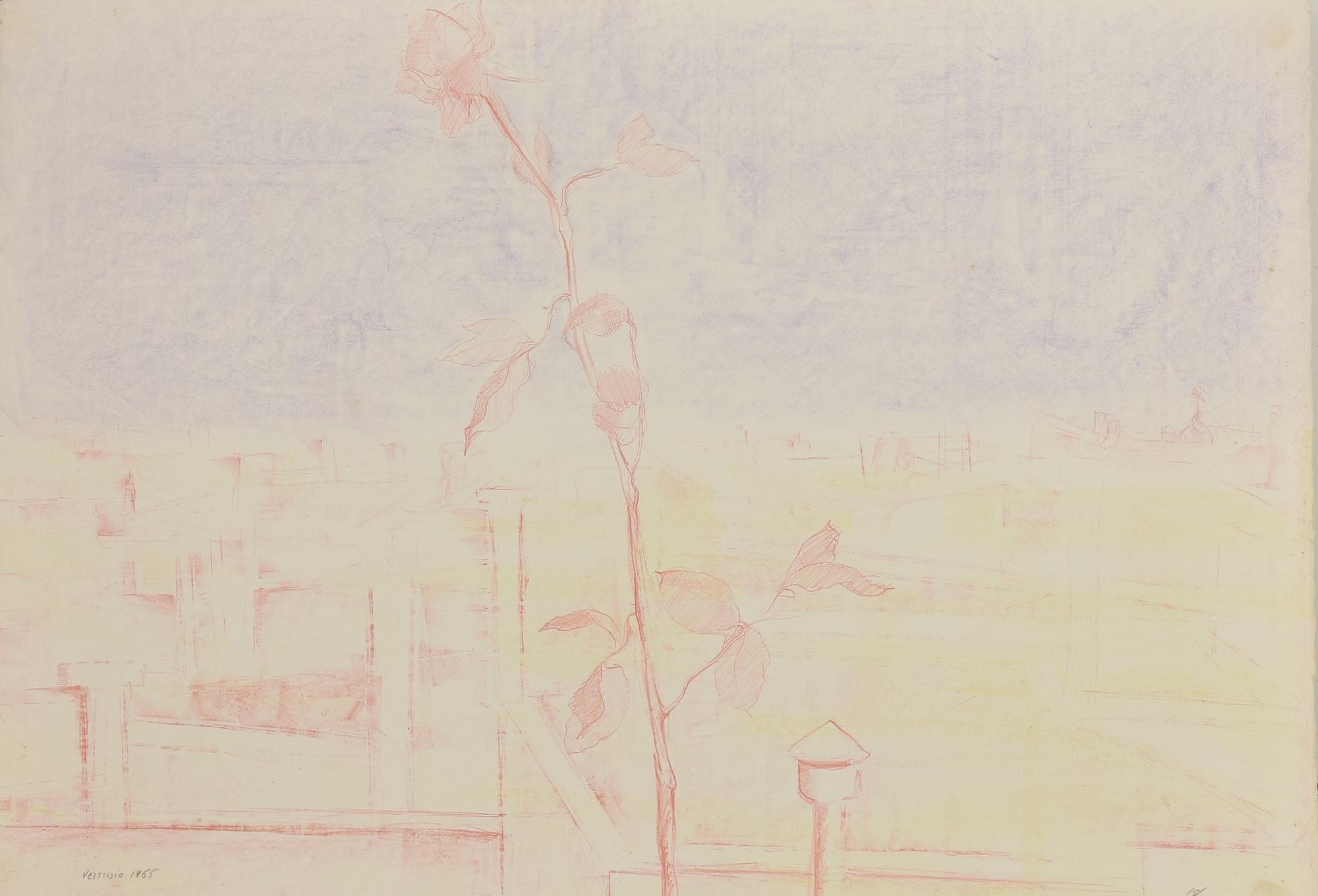 Pasquale Verrusio LA ROSA SUI TETTI litografia su carta, mm 48,5x70,5, su...