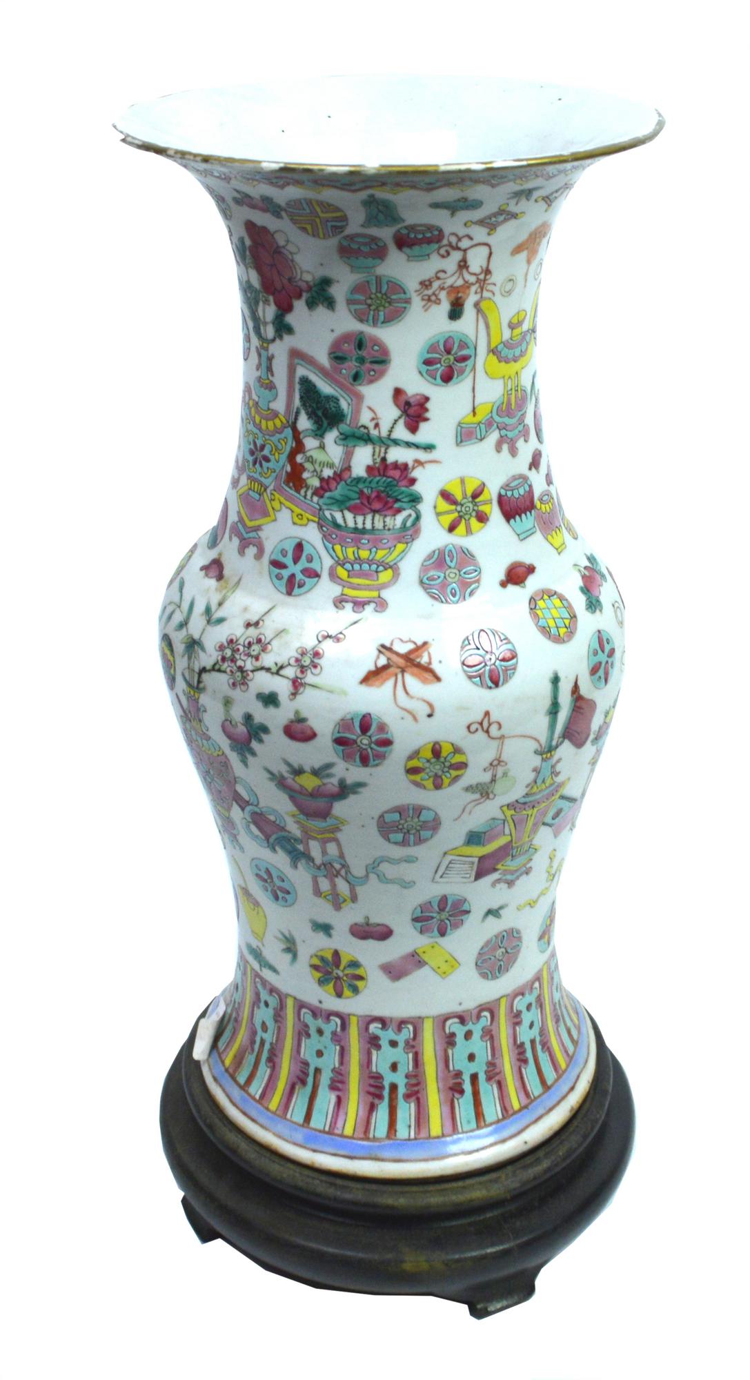 VASO CINESE con base in legno, h cm 39, su base cm 44,5