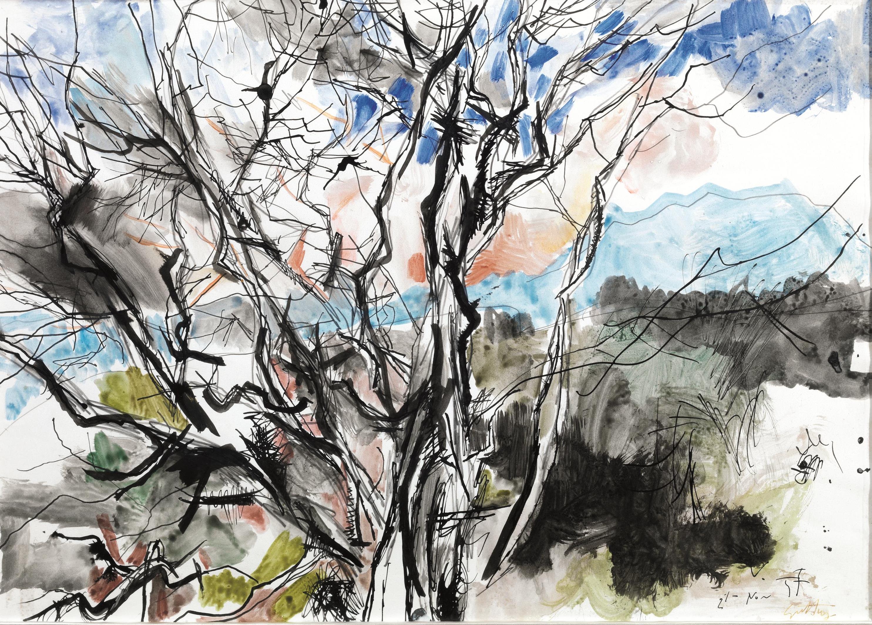 Renato Guttuso(Bagheria 1912 - Roma 1987)ALBERIchina e acquerello su carta,...