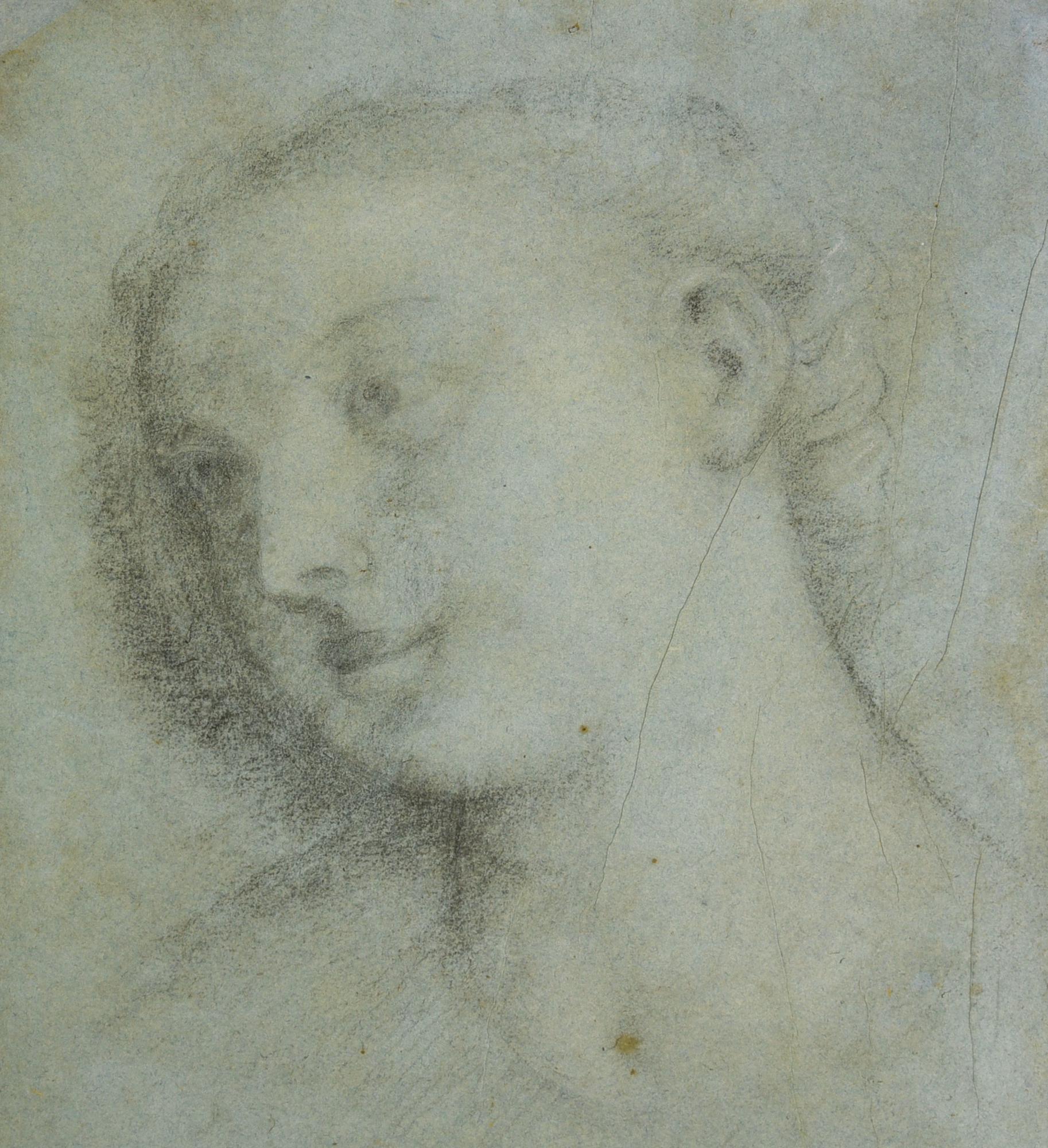 Scuola italiana del XVII secolo VOLTO FEMMINILE matita su carta vergellata e...