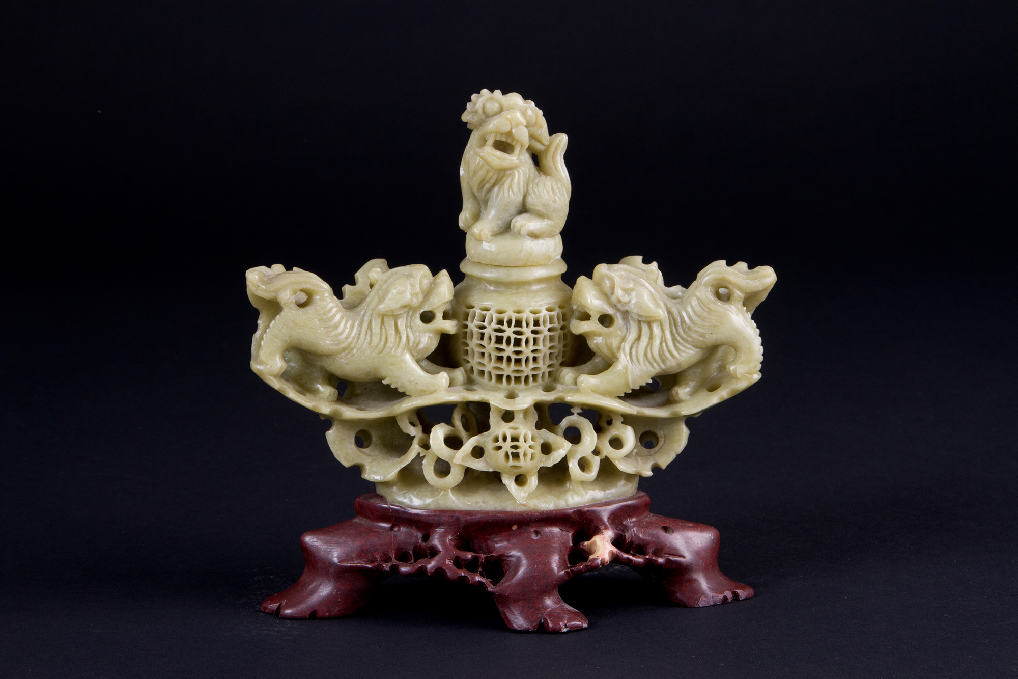 Sculpture in soapstone depicting "FO DOG". China. 20th century. 16x16cm approx. Scultura in pietra saponaria raffigurante "CANE DI FO". Cina. XX secolo. 16x16 cm ca.