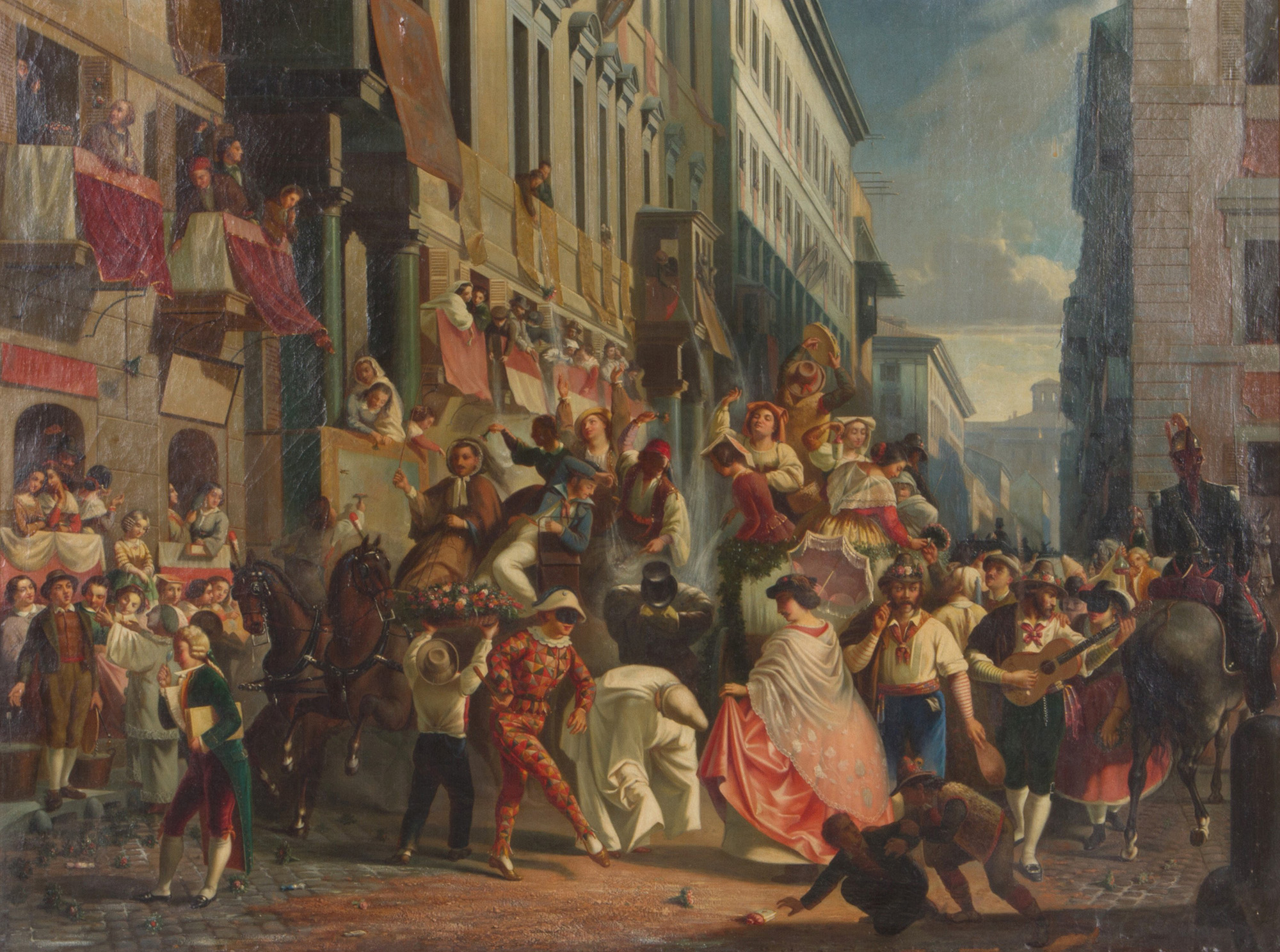 CAREL MAX GERLACHUS ANTOON QUAEDVLIEG (attr.) (Valkenburg 1823-Rome 1874). Oil painting on canvas depicting "DANCE IN MASK". In frame. 100x74cm approx. CAREL MAX GERLACHUS ANTOON QUAEDVLIEG (attr.) (Valkenburg 1823-Roma 1874). Dipinto olio su tela raffigurante "BALLO IN MASCHERA". In cornice. 100x74 cm ca.