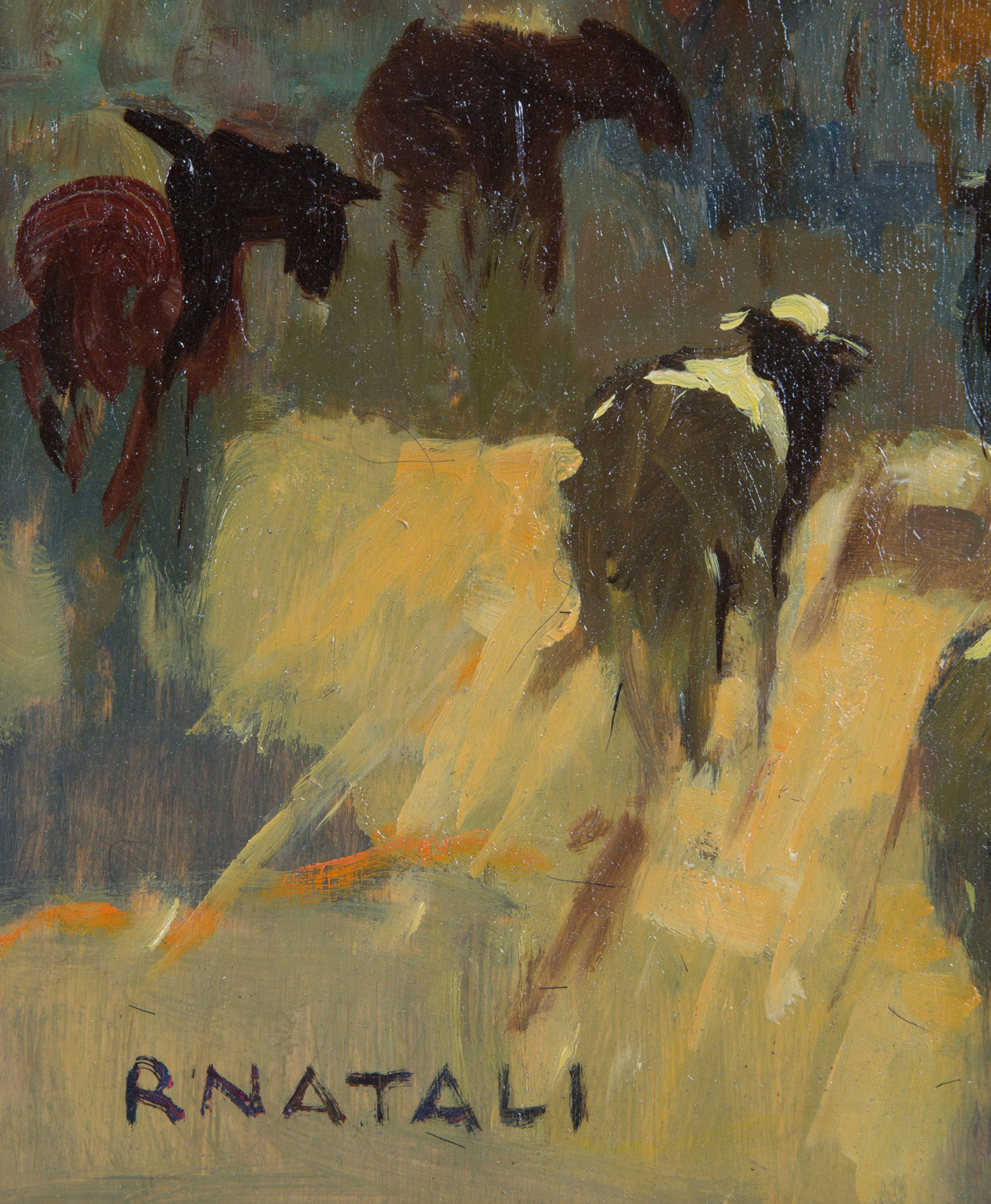 RENATO NATALI. Painting "LANDSCAPE WITH SHEPHERDS AND SHEEPS"