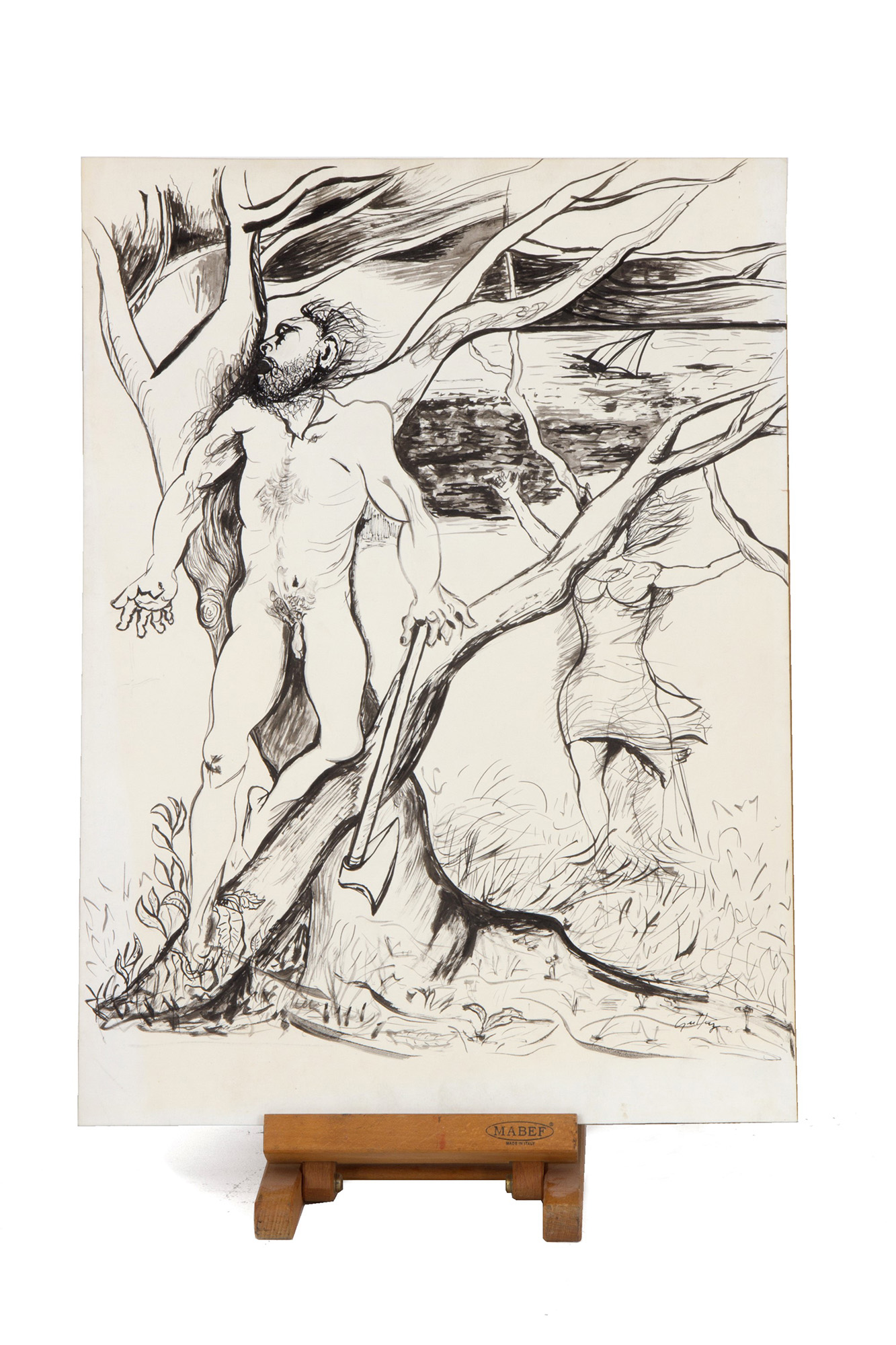 RENATO GUTTUSO (attr.). Ink on paper "NUDE MAN AND FEMALE FIGURE"