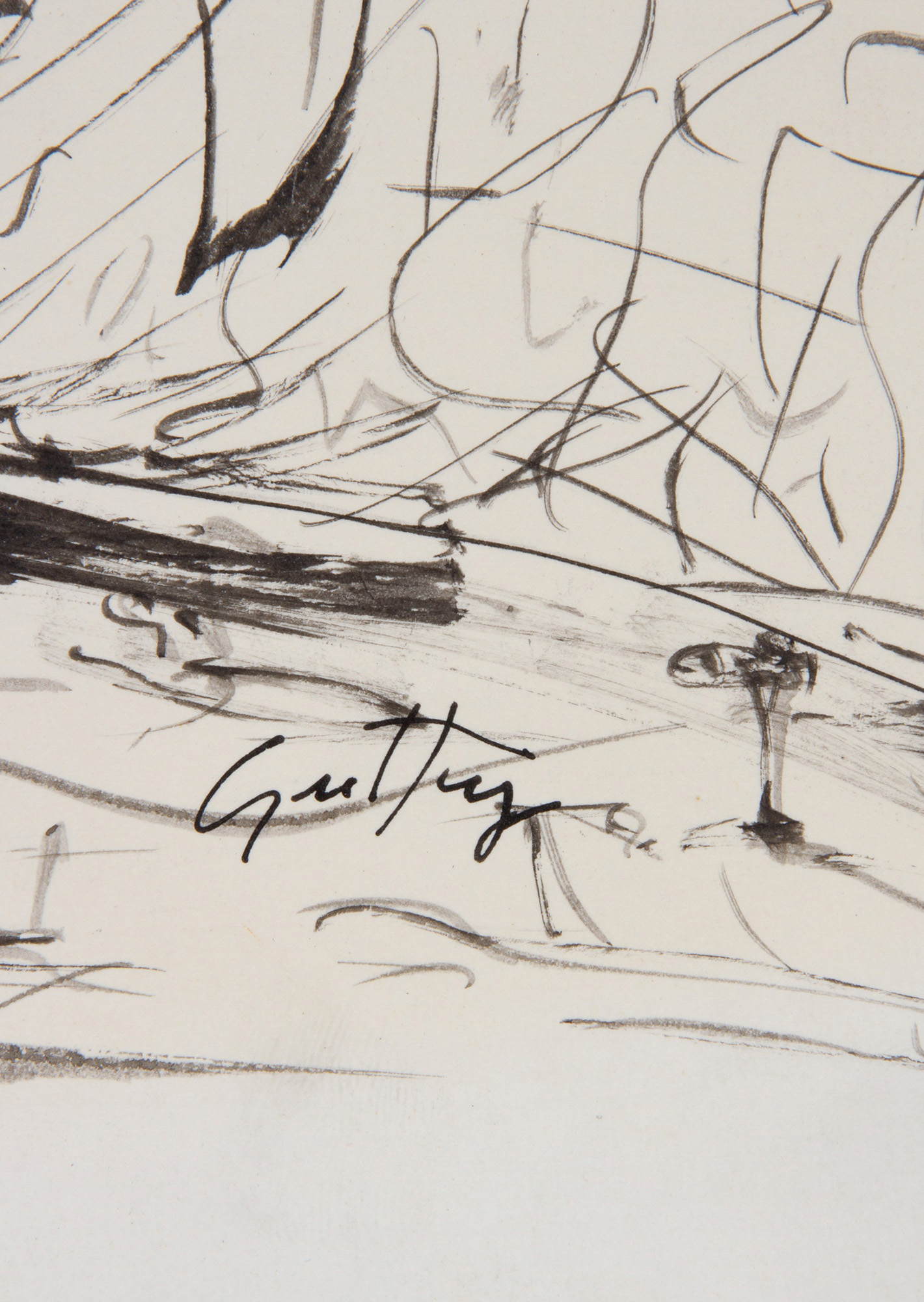 RENATO GUTTUSO (attr.) (Bagheria (Palermo) 1912-Roma 1987). Ink drawing on paper depicting "NUDE MAN AND FEMALE FIGURE". Signed lower right. 50x36.5cm approx. RENATO GUTTUSO (attr.) (Bagheria (Palermo) 1912-Roma 1987). Disegno a china su carta raffigurante "NUDO DI UOMO E FIGURA FEMMINILE". Firmato in basso a destra. 50x36,5 cm ca.
