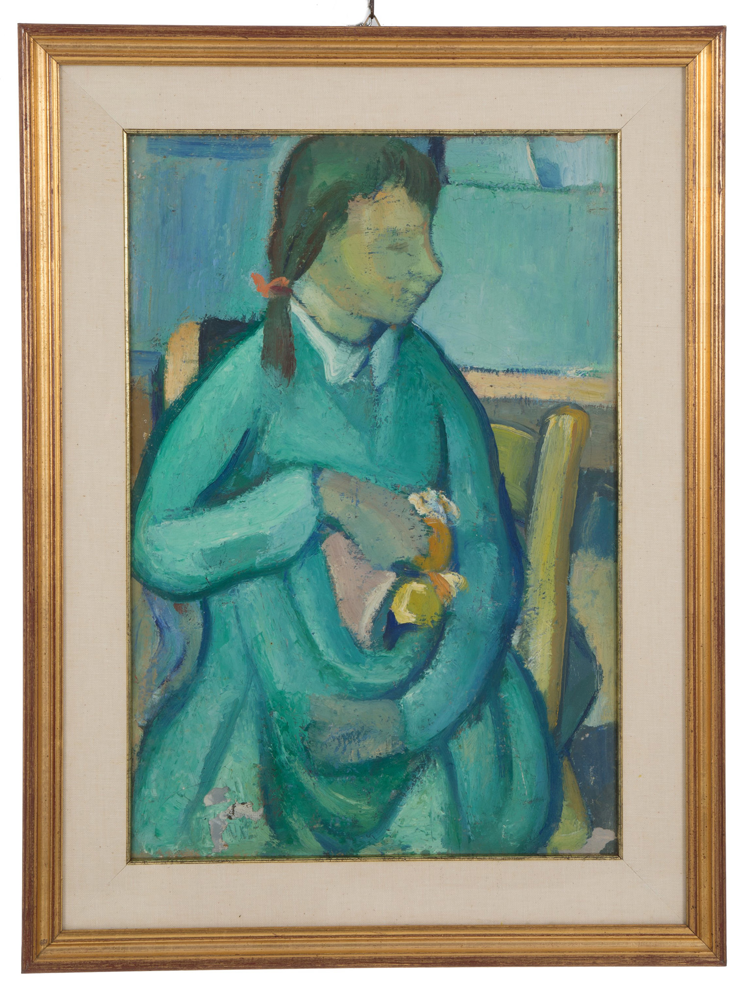 ALESSANDRO VOLPI (Pisa 1909-2009). Oil painting on canvas depicting "CHILDREN". Authenticated by the artist's wife on the back. In frame. 59x40cm approx. ALESSANDRO VOLPI (Pisa 1909-2009). Dipinto olio su tela raffigurante "BAMBINA". Con autentica della moglie dell'artista sul retro. In cornice. 59x40 cm ca.