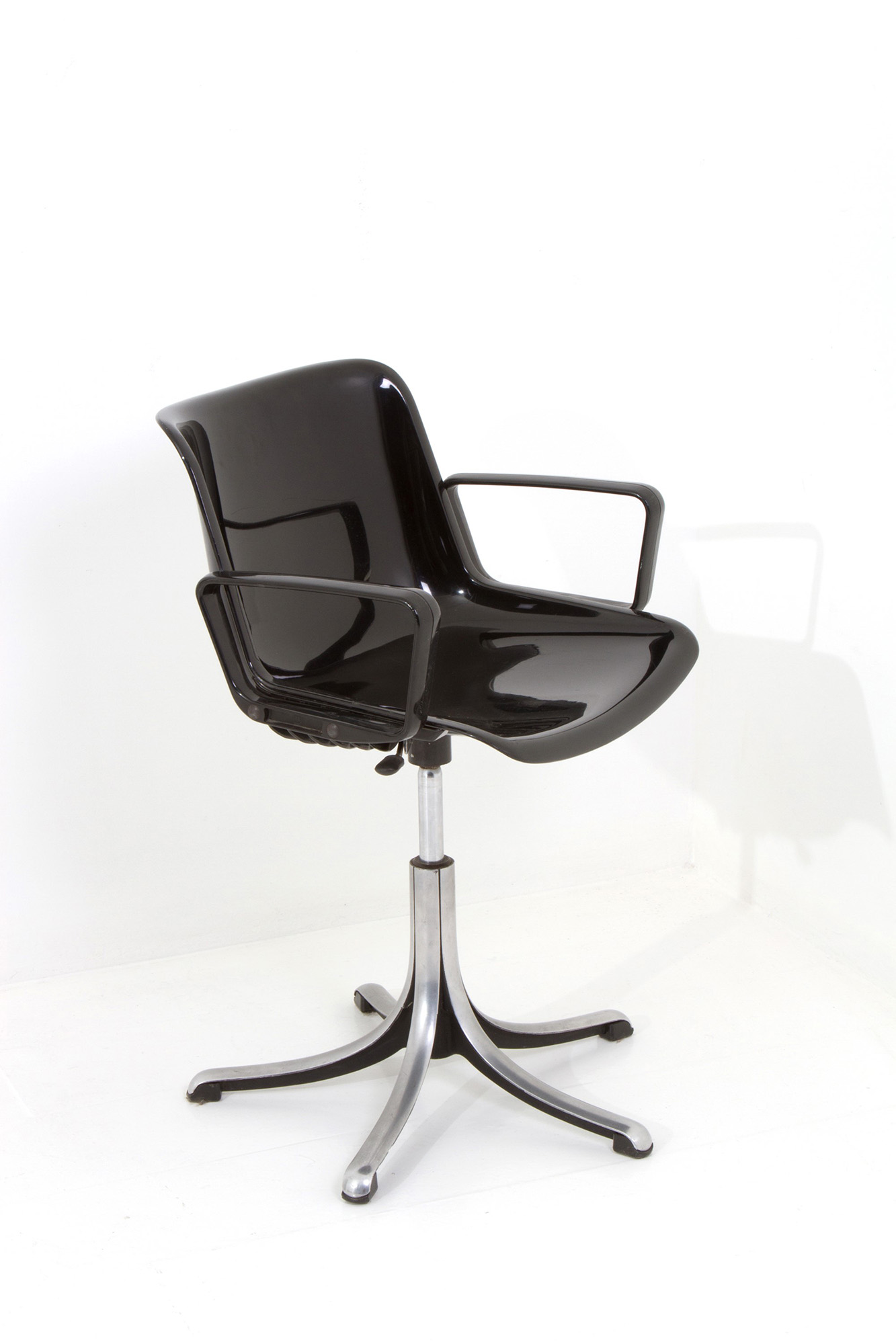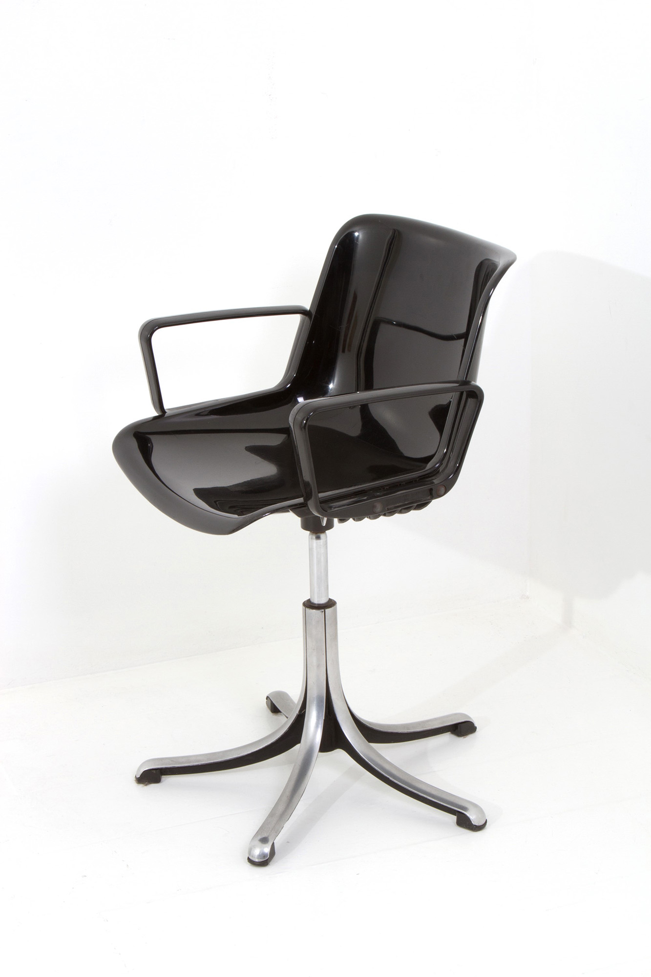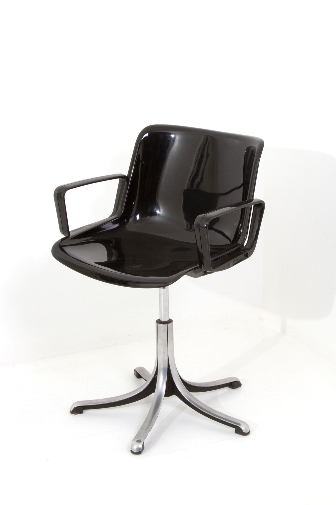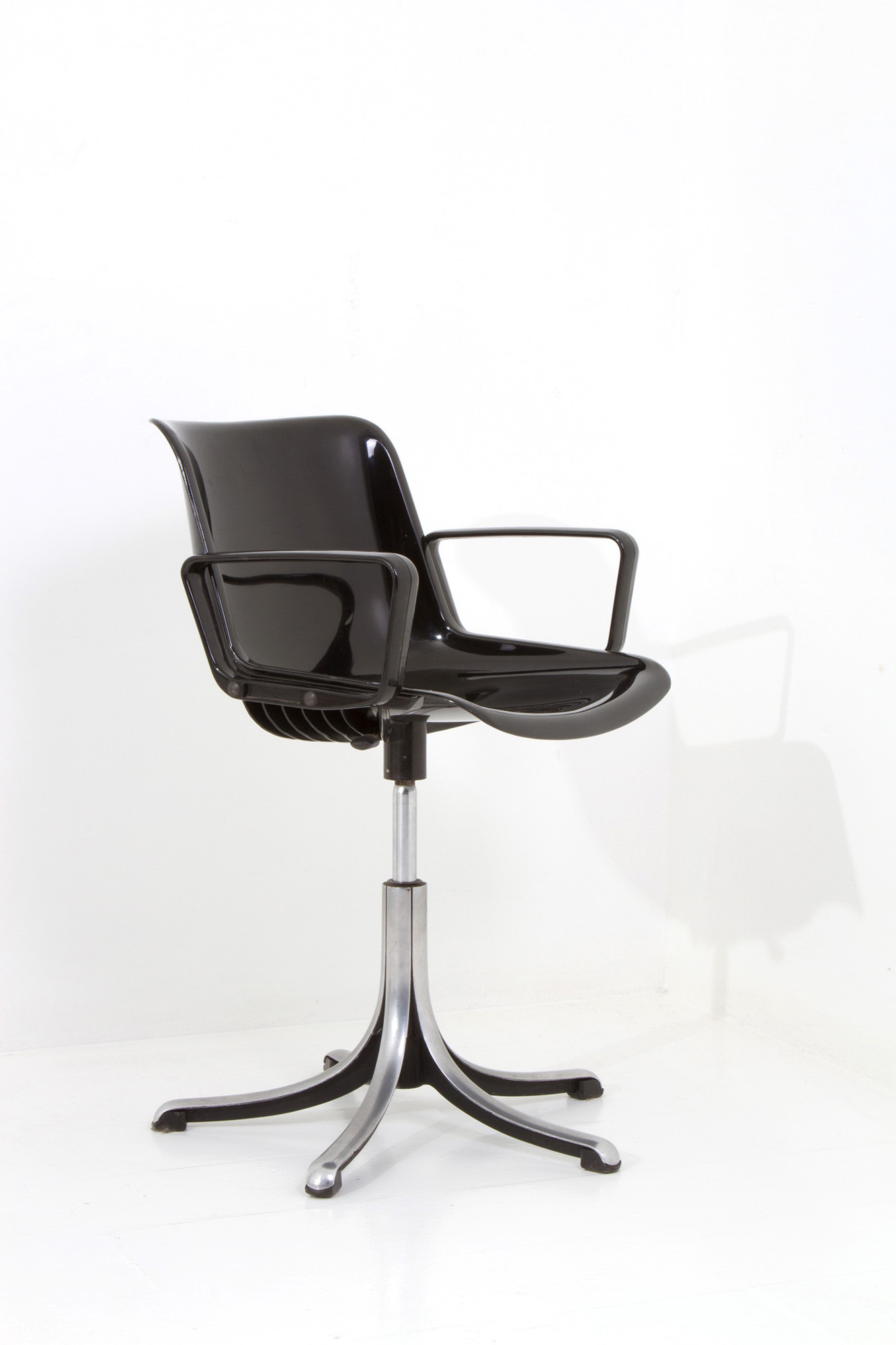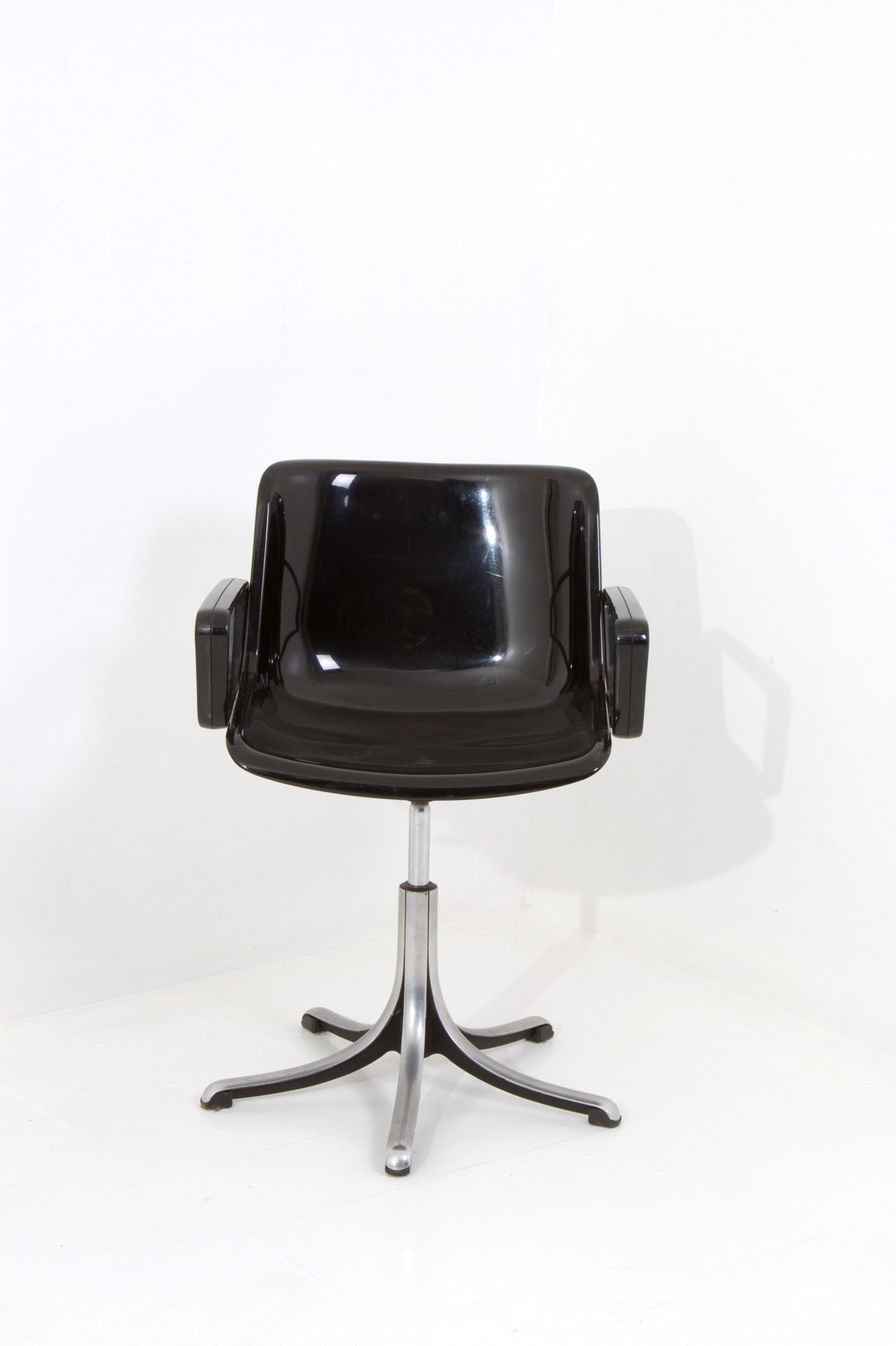 Modus md5533 model chair in black plastic material with die-cast base. TECNO production. 70's. 81x56cm approx. Sedia modello Modus md5533 in materiale plastico di colore nero con base in pressofusione. Produzione TECNO. Anni '70. 81x56 cm ca.