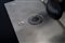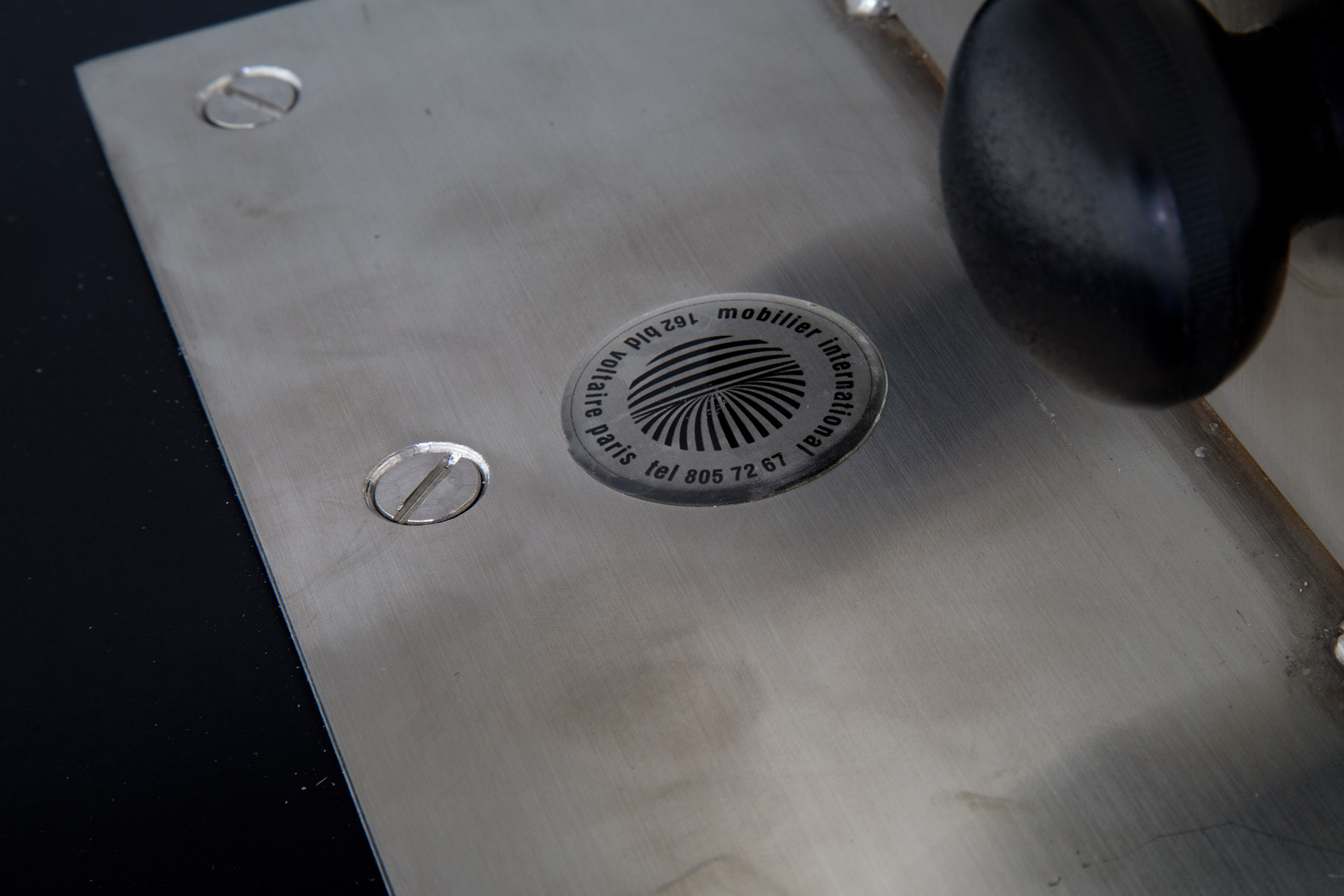Pouff measures: approx. 40x73x73 cm. OSCAR NIEMEYER (Rio de Janeiro 1907-2012). Poltrona con pouff in acciaio cromato, pomelli in plastica e rivestimento in pelle nera. Produzione MOBILIER INTERNATIONAL. Con etichetta del produttore. Anni '70.