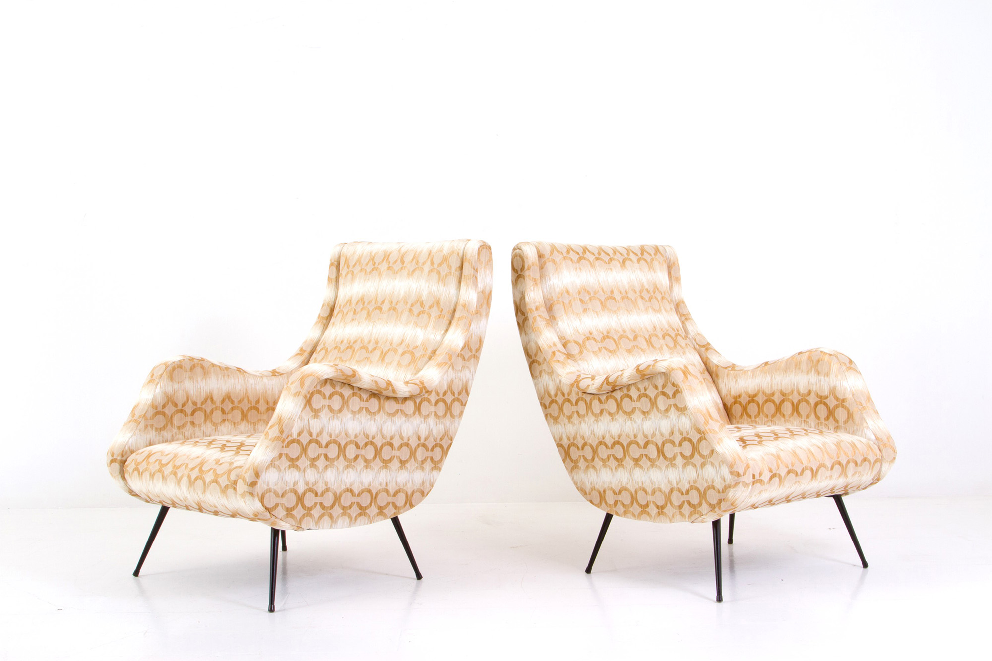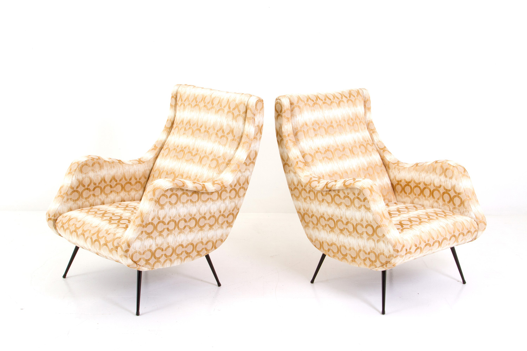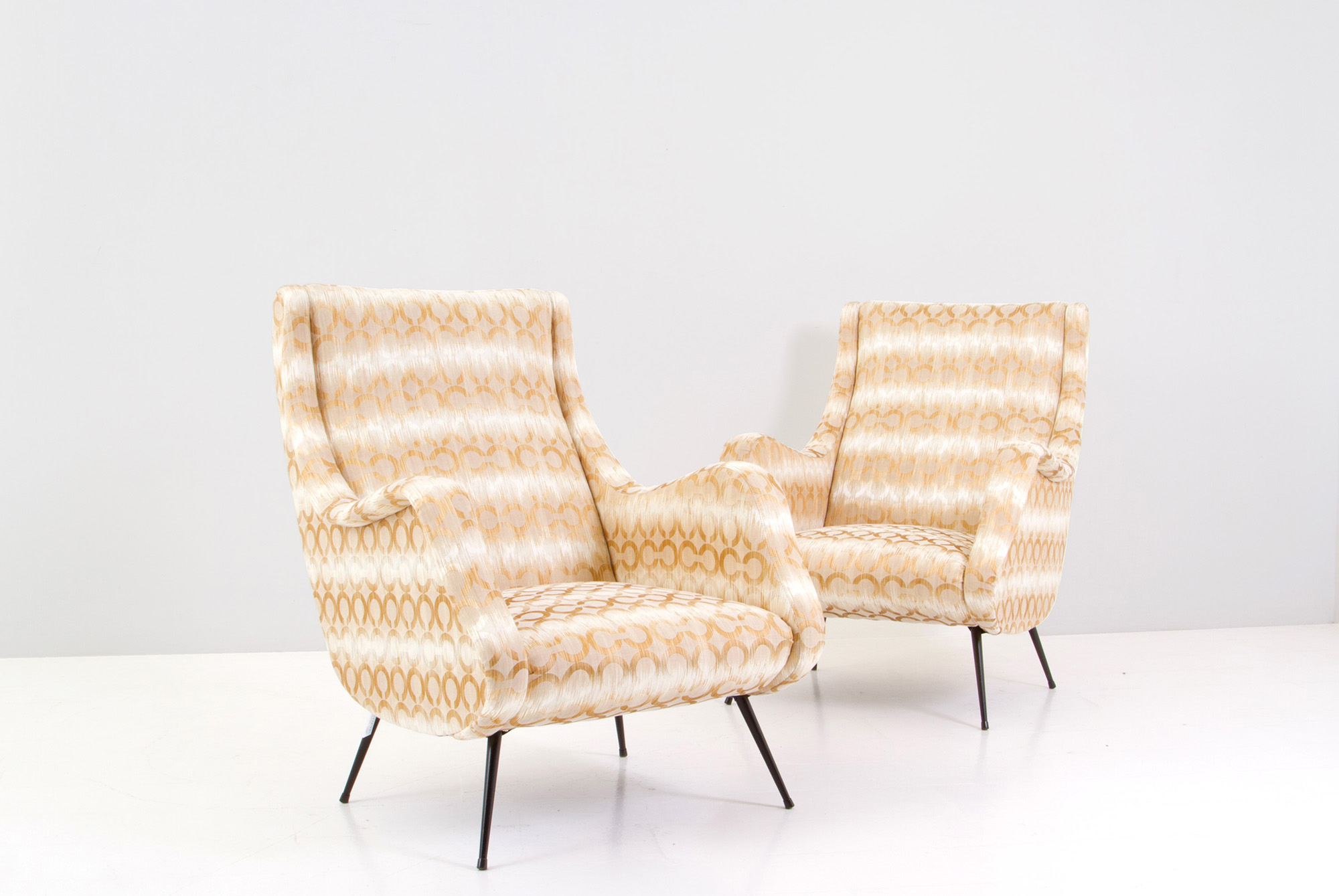 ALDO MORBELLI (stile di) (Alessandria 1903-Torino 1963). Pair of armchairs with painted metal legs. 50s. 89x71x89cm approx. ALDO MORBELLI (stile di) (Alessandria 1903-Torino 1963). Coppia di poltrone con gambe in metallo verniciato. Anni '50. 89x71x89 cm ca.