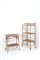 Etagere e tavolino in bambù curvato con puntali in lamiera. Inizi XX secolo. Difetti. Tavolino: 78x68x48 cm ca. Etagere: 135x61x38 cm ca.