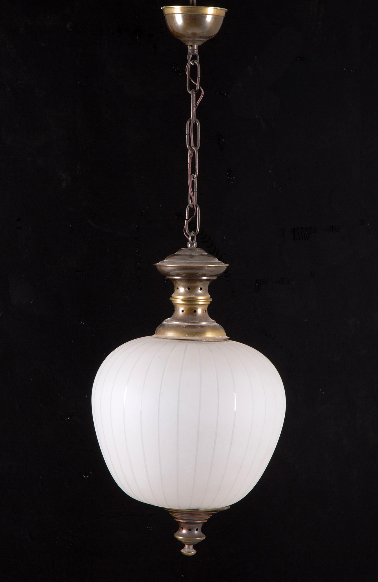 LUIGI CACCIA DOMINIONI (Milano 1913-Milano 2016). LS1 chandelier in brass and glass. AZUCENA production. 60s-70s. 100x26cm approx. LUIGI CACCIA DOMINIONI (Milano 1913-Milano 2016). Lampadario LS1 in ottone e vetro. Produzione AZUCENA. Anni '60-'70. 100x26 cm ca.