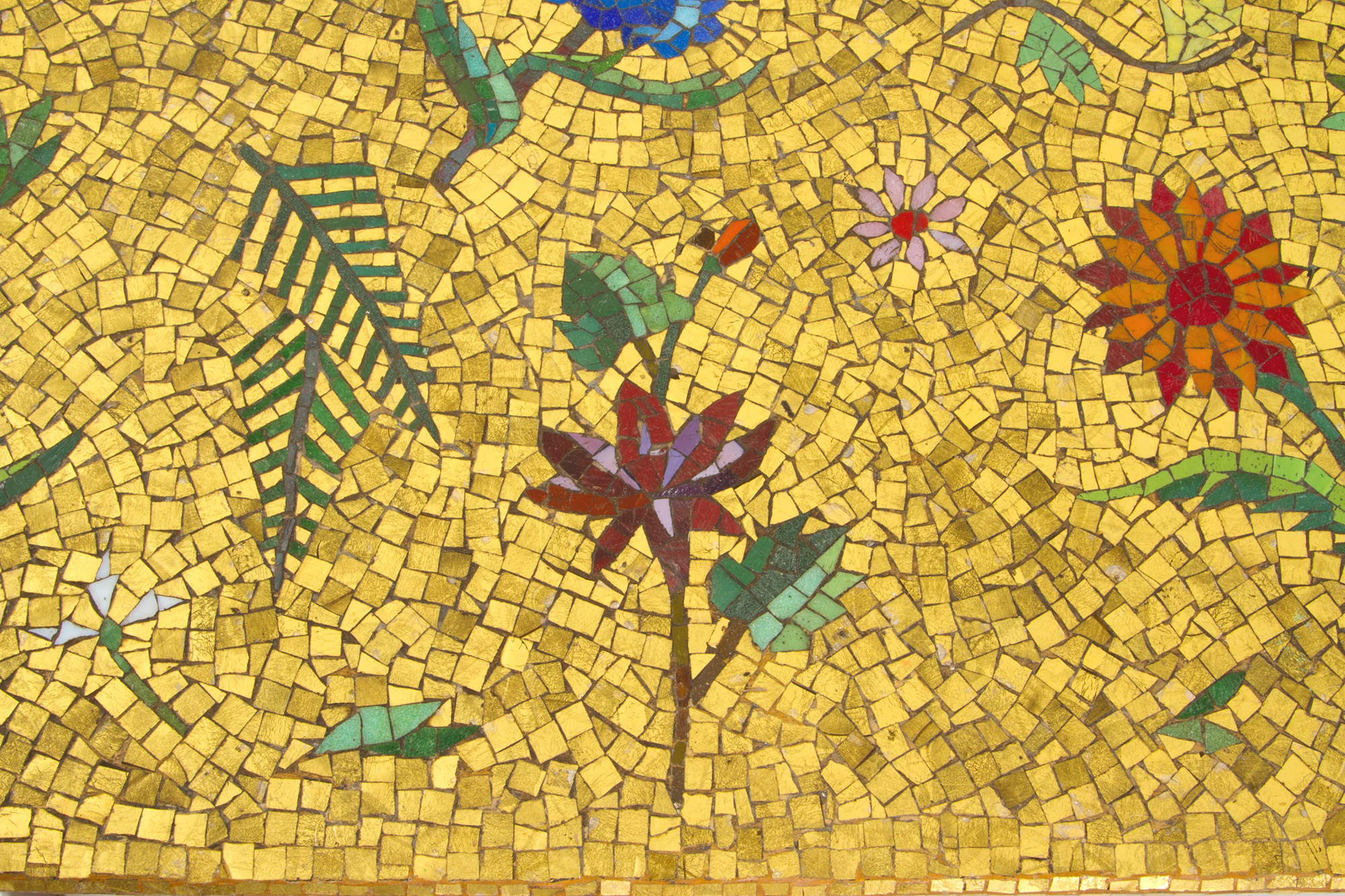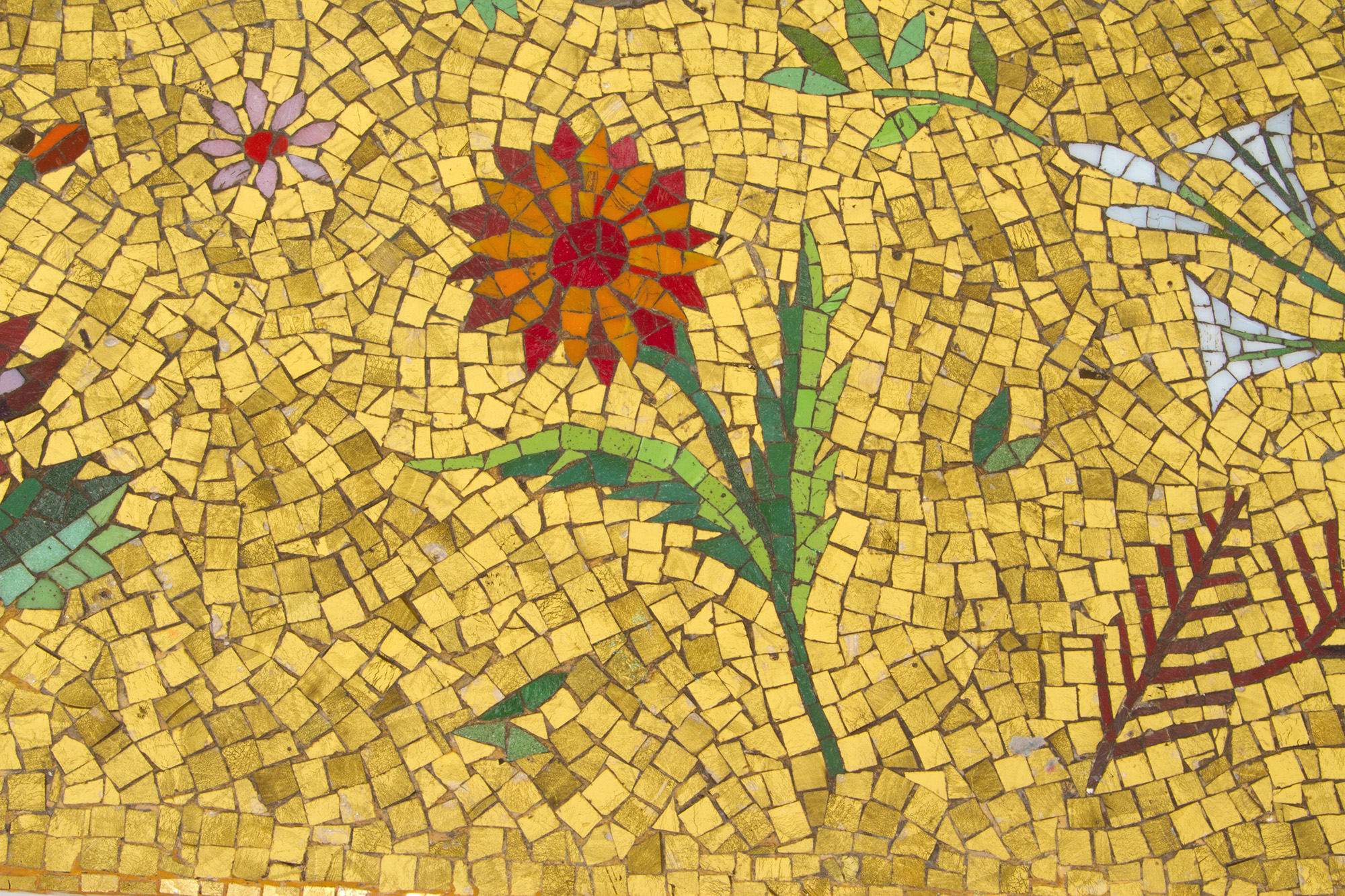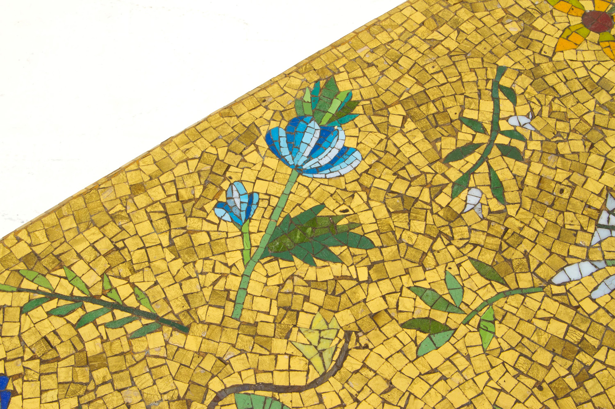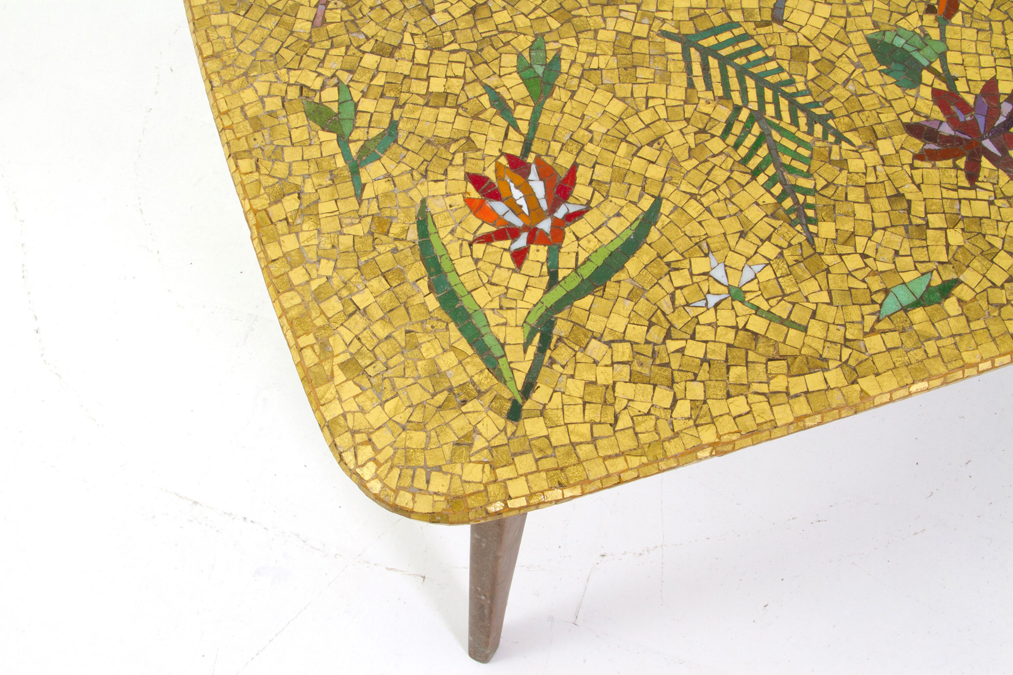 Wooden coffee table with mosaic top. 50s. 51x120x48cm approx. Tavolino in legno con piano in mosaico. Anni '50. 51x120x48 cm ca.