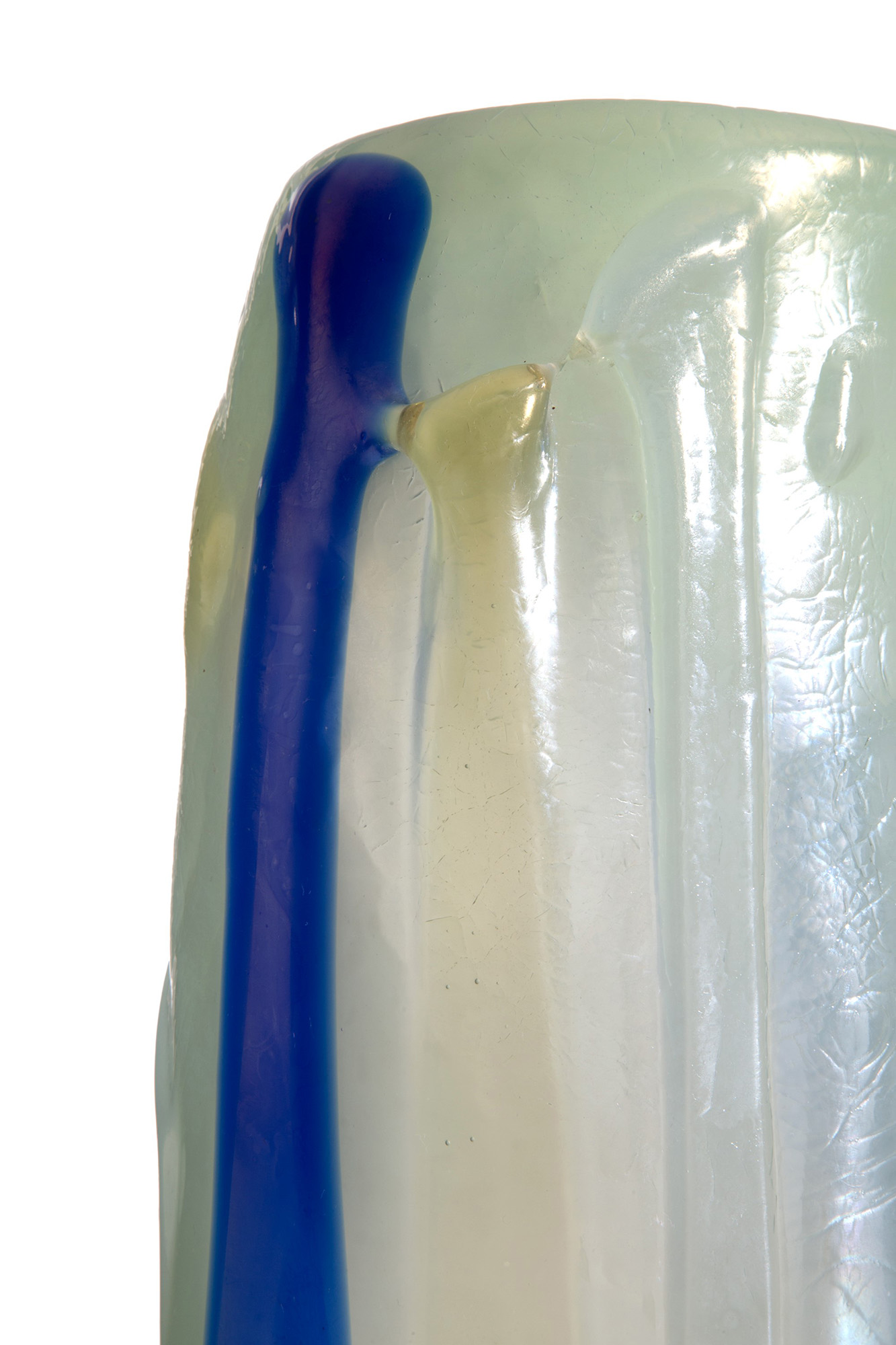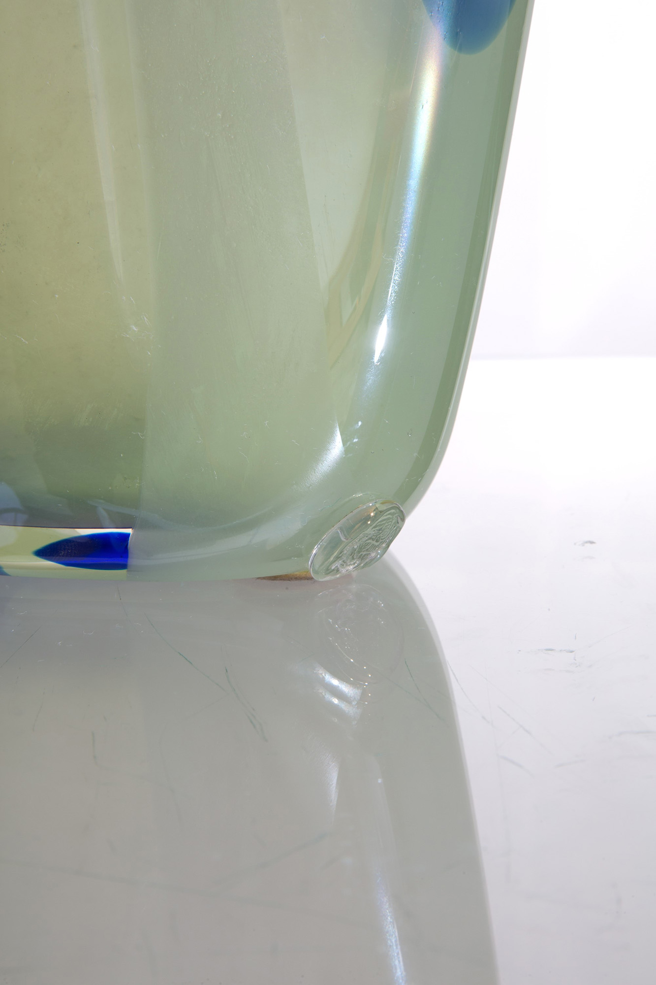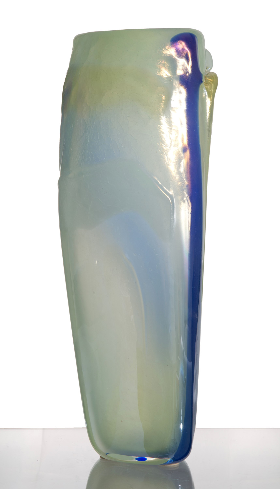 ANGELO RINALDI (Padova 1960-2010). Glass paste vase. Signed and dated 1979.5 on the bottom. Height approx. 48 cm. ANGELO RINALDI (Padova 1960-2010). Vaso in pasta di vetro. Firmato e datato 1979.5 sul fondo. Alt.48 cm ca.