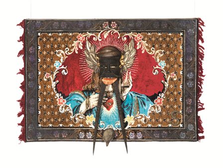 assemblaggio polimaterico su tavola di truciolato, 132x164x35