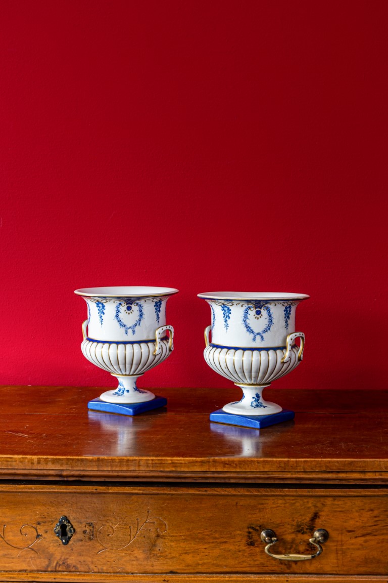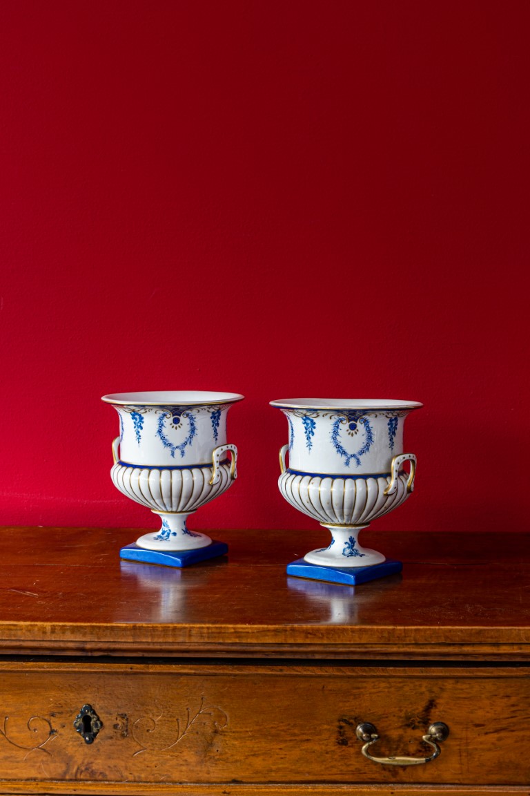 Coppia di vasi in porcellana di Parigi bianco e blu